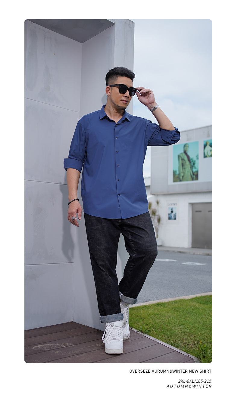 Весенний и осенний новый большой размер мужской рубашки с длинными рукавами толстый брат без шрамов