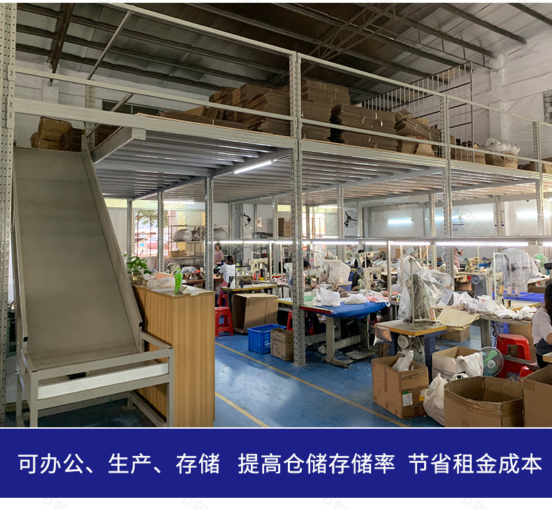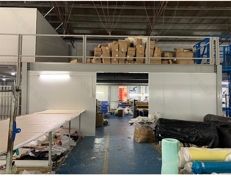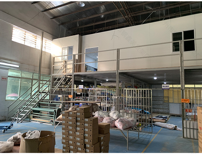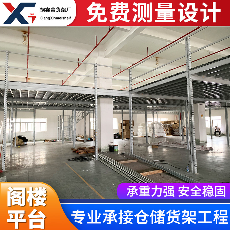 Полки для хранения в Гуанчжоу, отделение на чердаке, заводская сборочная линия, строительная стальная конструкция, I-образная сталь, двухэтажные офисные полки на платформе