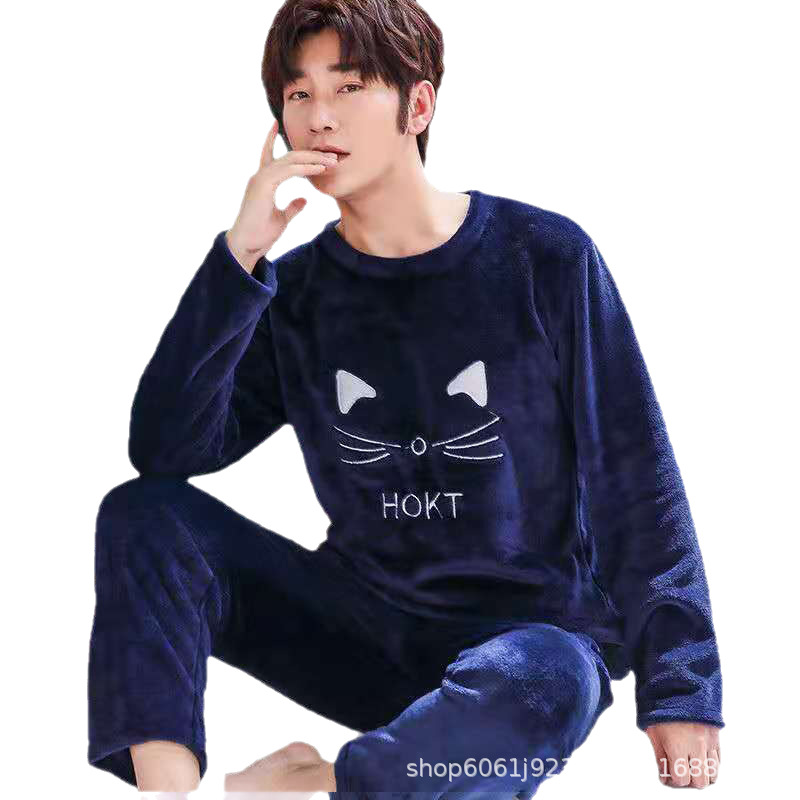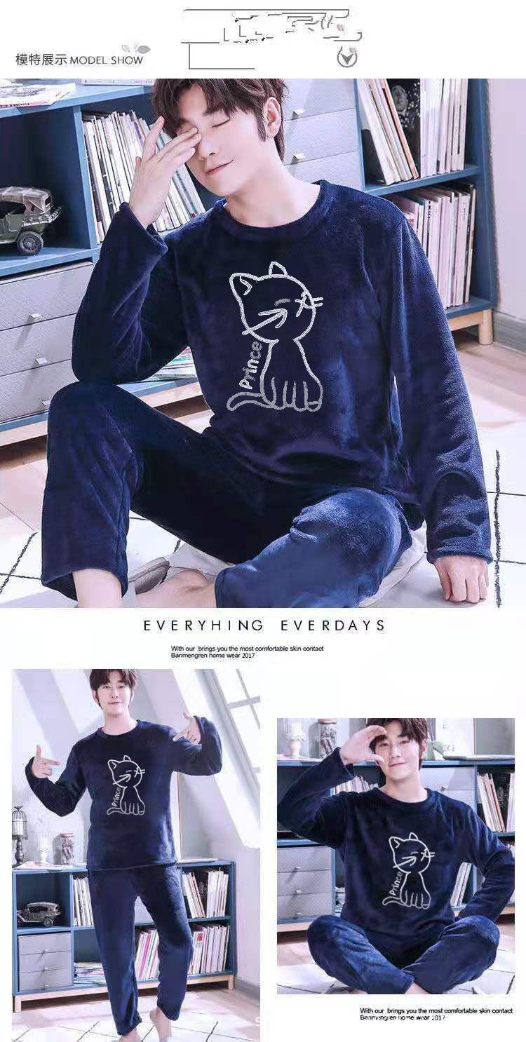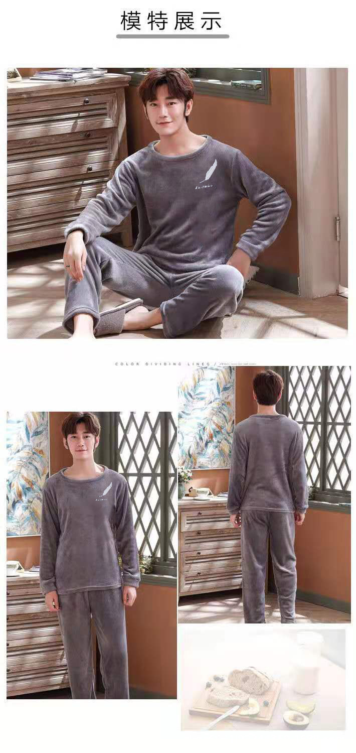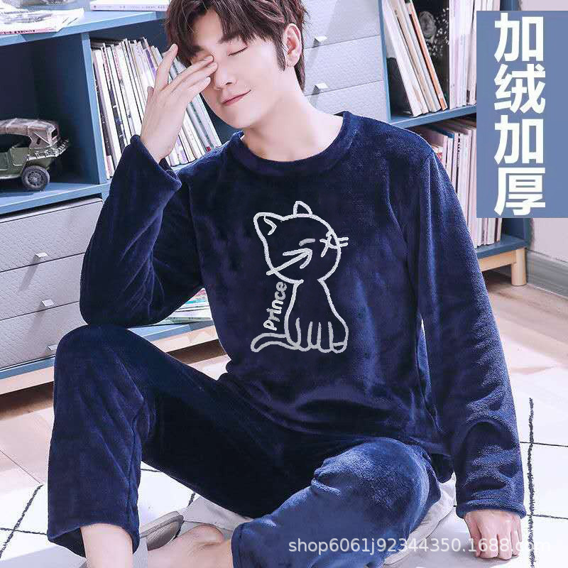 Пижама Мужская зимняя на флисовой подкладке утолщенный Молодежный фланелевый осенне-зимний костюм Мужская домашняя одежда из кораллового флиса больших размеров комплект из двух предметов