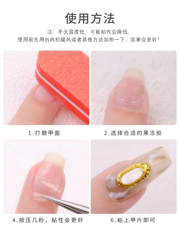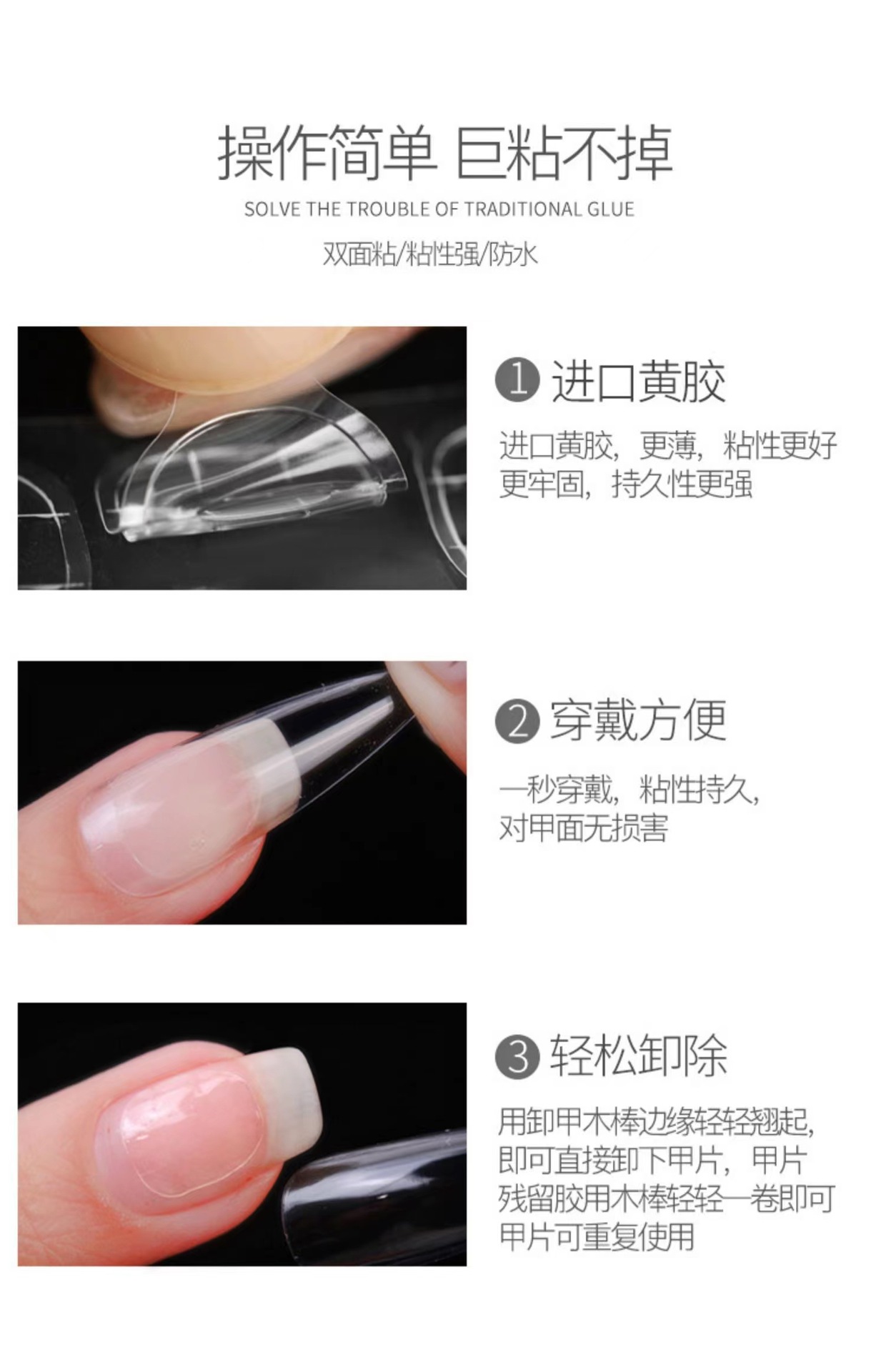 Сильный желейный клей, порошок желтого клея, ультратонкая маникюрная накладка, съемная водонепроницаемая высоковязкая двусторонняя лента для ногтей
