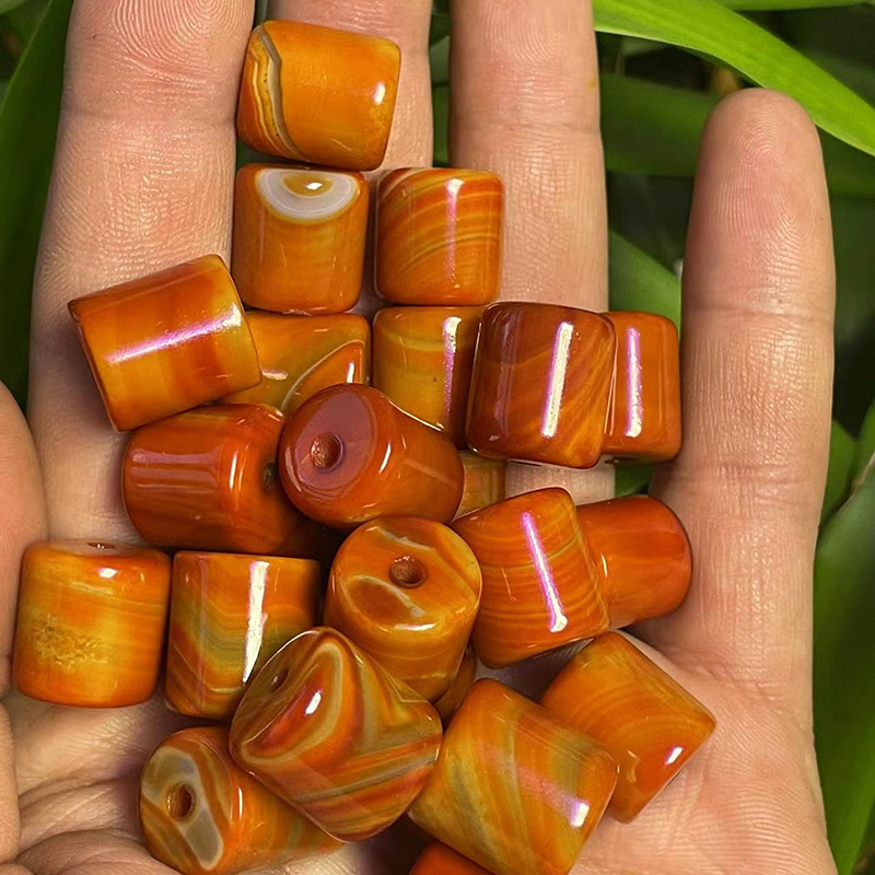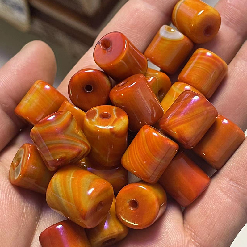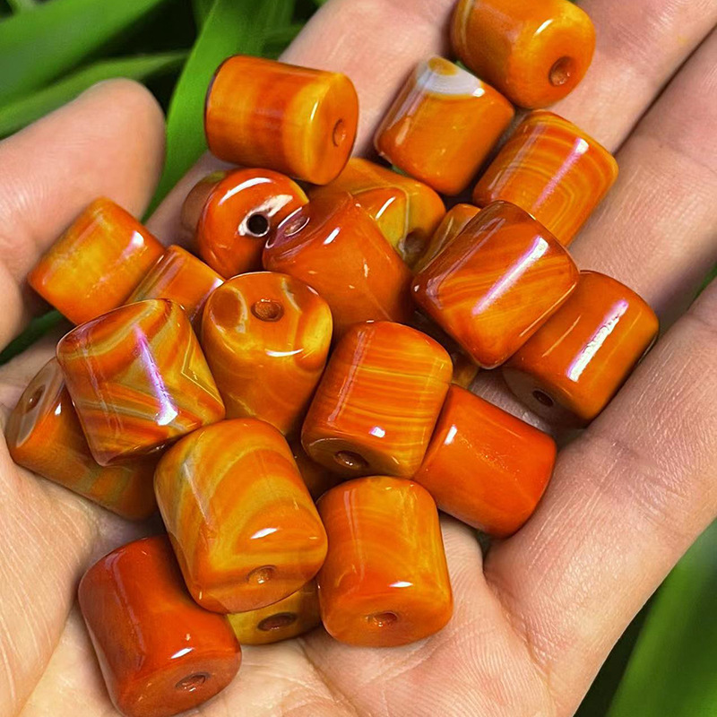 Завод оптовой Тибет Старый Агат 10✖11 мм Воюющие государства Красный Цвет Красный Желтый Шелковый Цилиндрические Свободные Бусины