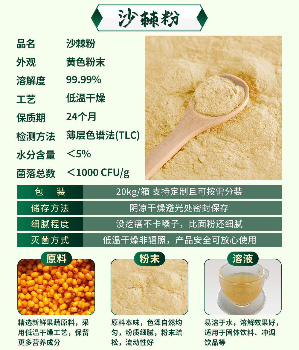 工厂直销沙棘粉水溶沙棘果粉不易结块营养代餐奶昔原料沙棘提取物