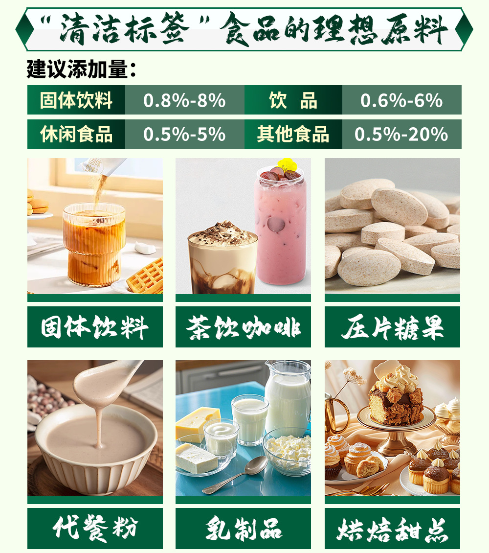 Твердые напитки, таблетированные конфеты, порошки для замены приема пищи, выпечка, функциональные продукты, сырье