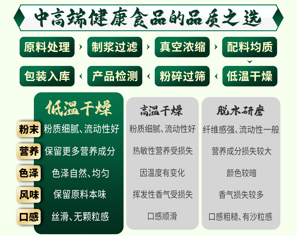 Высококонцентрированный порошок, процесс сушки при низкой температуре