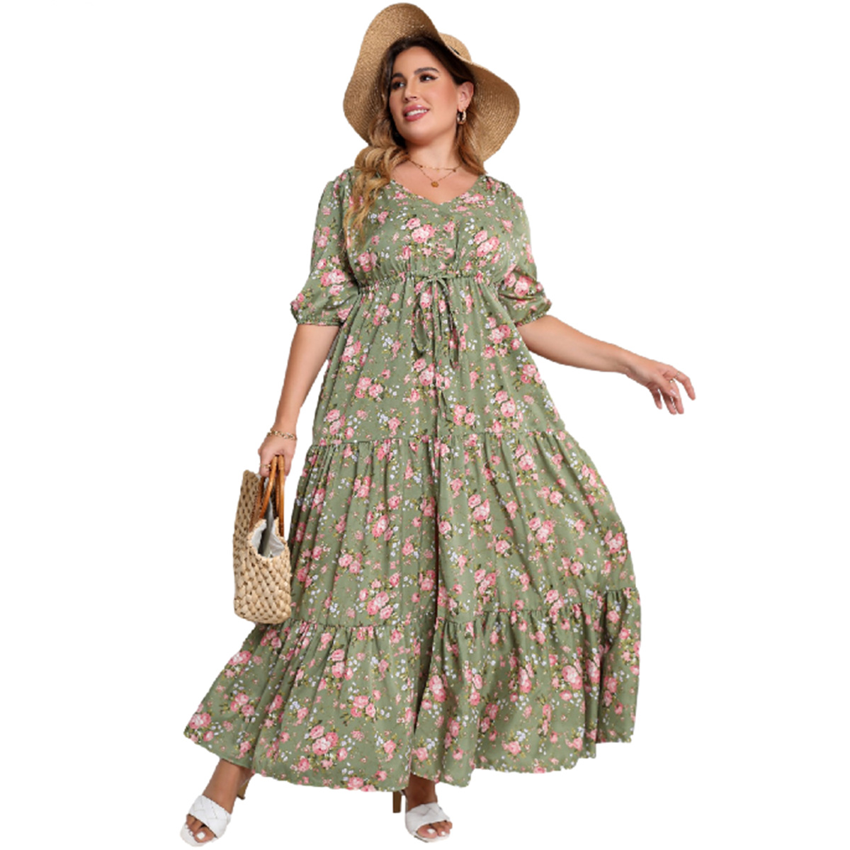 Новинка 2026 года: Летнее пляжное платье больших размеров в богемном стиле с принтом, свободного кроя, для европейского и американского рынков.