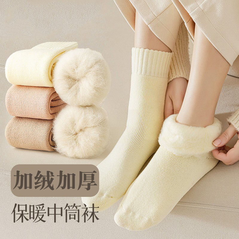 Кашемировые носки, женские осенне-зимние носки средней длины на флисовой подкладке, утолщенные плюшевые длинные носки в форме Луны, супер толстые чулки для сна в полу