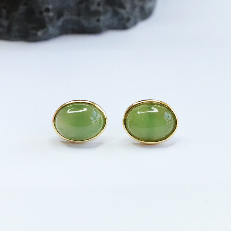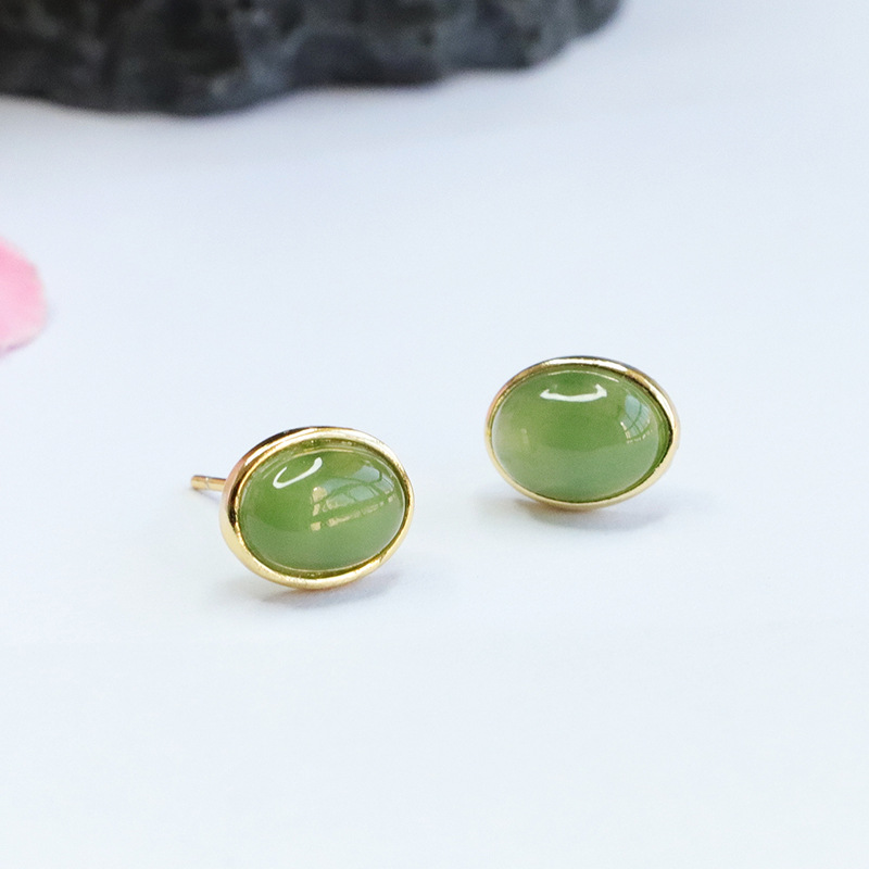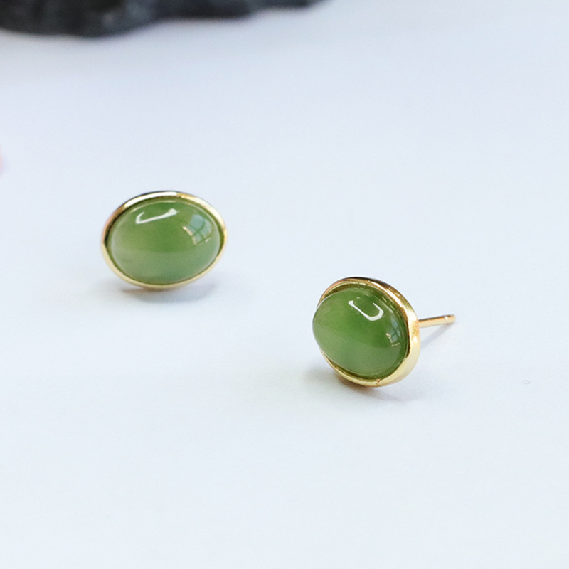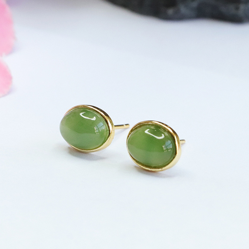 S925 Серебряный набор серьги-гвоздики из нефрита Jasper Hetian