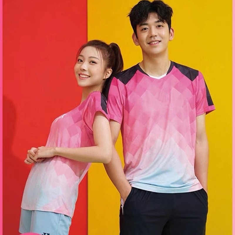 Новый костюм для бадминтона YY, мужской и женский Быстросохнущий дышащий костюм с короткими рукавами и круглым вырезом, спортивный костюм с короткими рукавами, детский тренировочный костюм с принтом