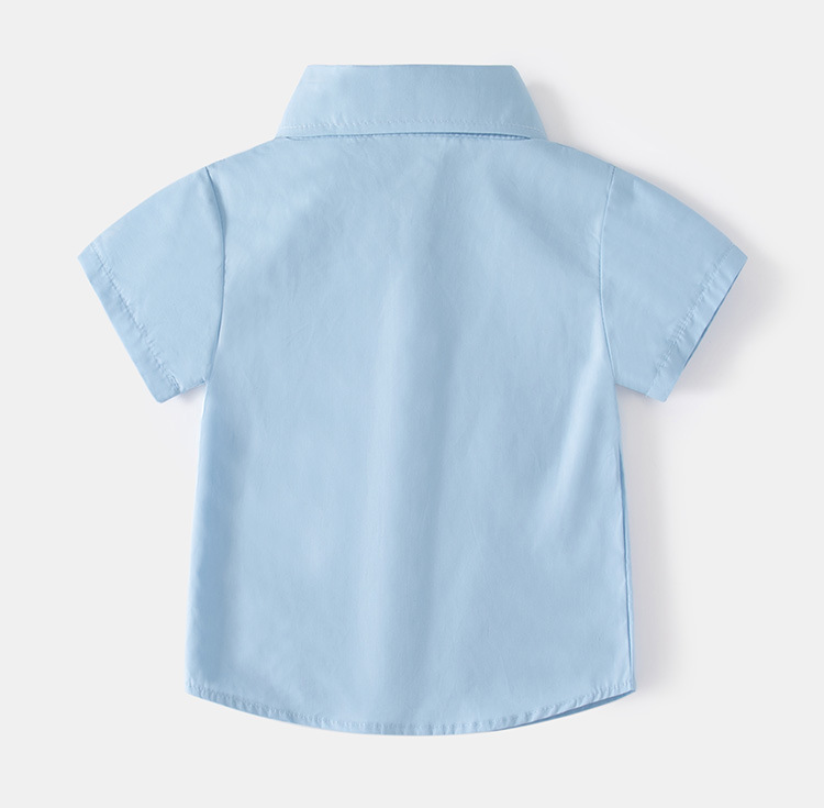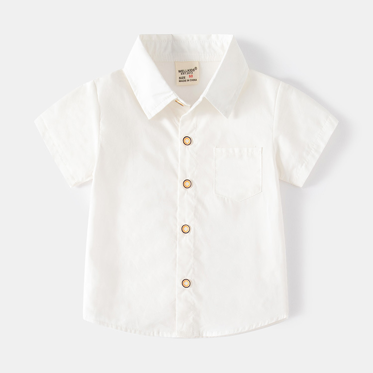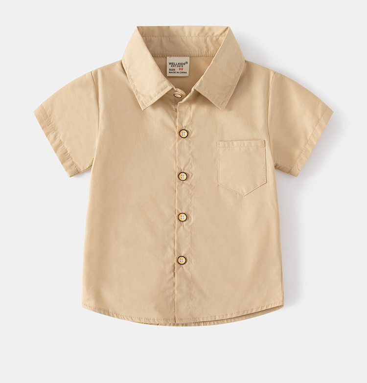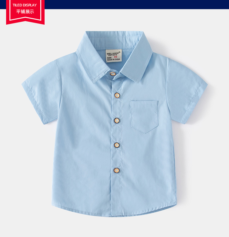 Повседневная Классная рубашка с короткими рукавами для мальчиков, монохромная Новая детская рубашка с лацканами, Корейская красивая летняя рубашка с короткими рукавами