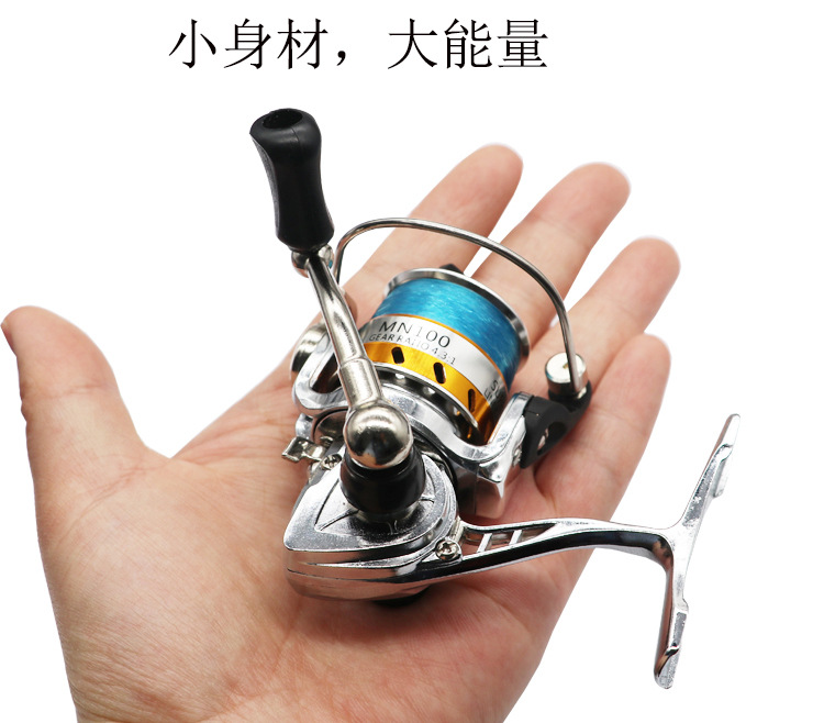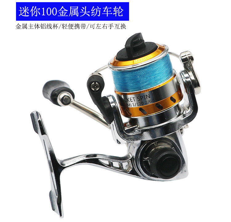 Производитель на складе, оптовая продажа, мини 100-тип, металлический основной корпус с проволочной прялкой, микрообъект, вращающееся колесо для зимней рыбалки, рыболовное колесо