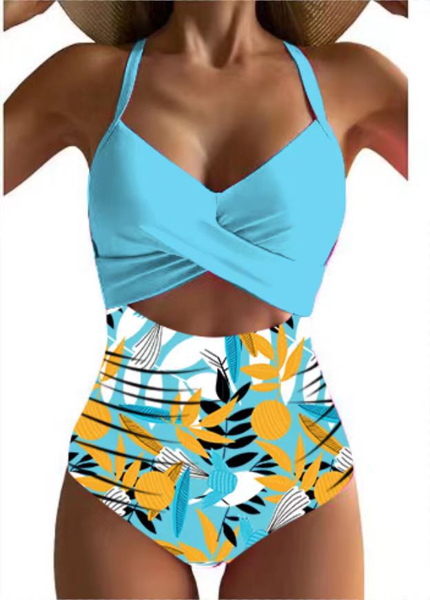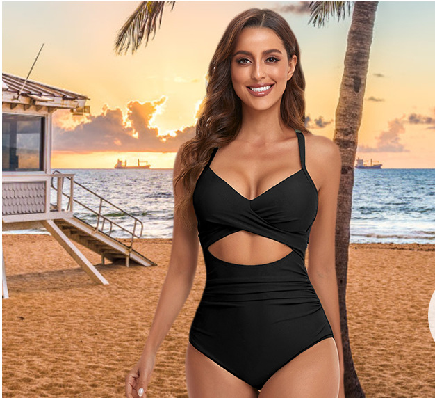 Сплошной купальник Amazon Европейская и американская внешняя торговля контрастная Цветовая строчка сексуальный полый купальник с регулируемым перекрестным соотношением ремешков основа