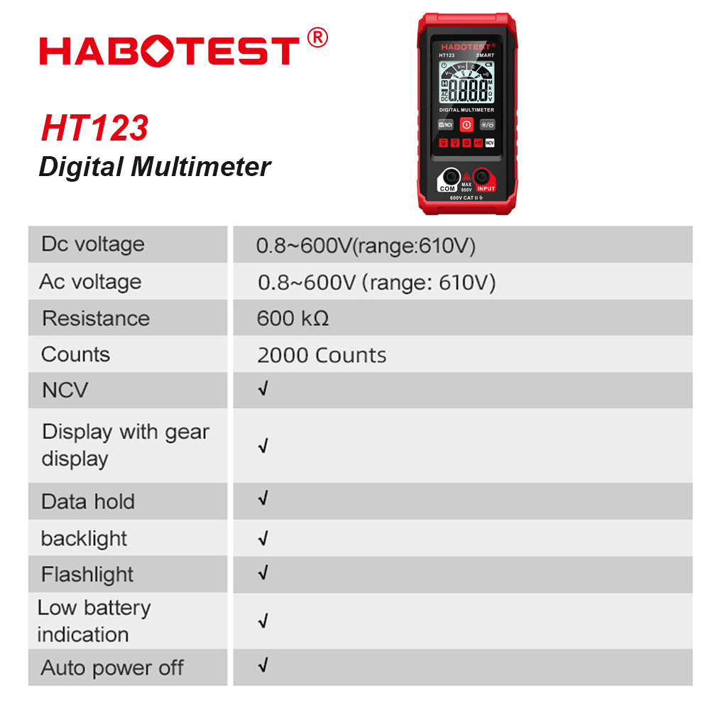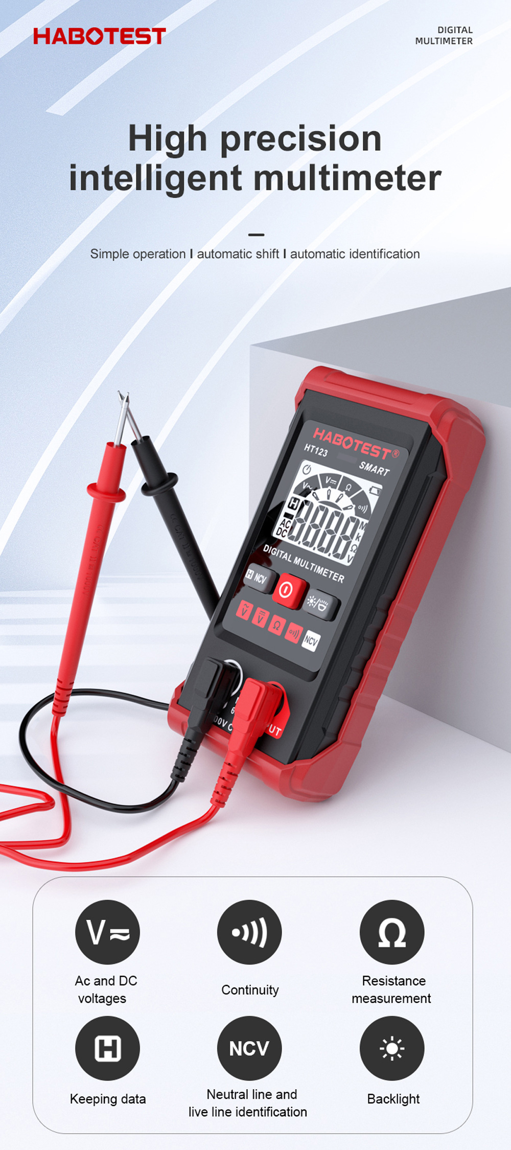 Мини-мультиметр Huabo HT123, ремонт электрика, цифровой дисплей, Универсальный Интеллектуальный бытовой цифровой мультиметр с защитой от ожогов