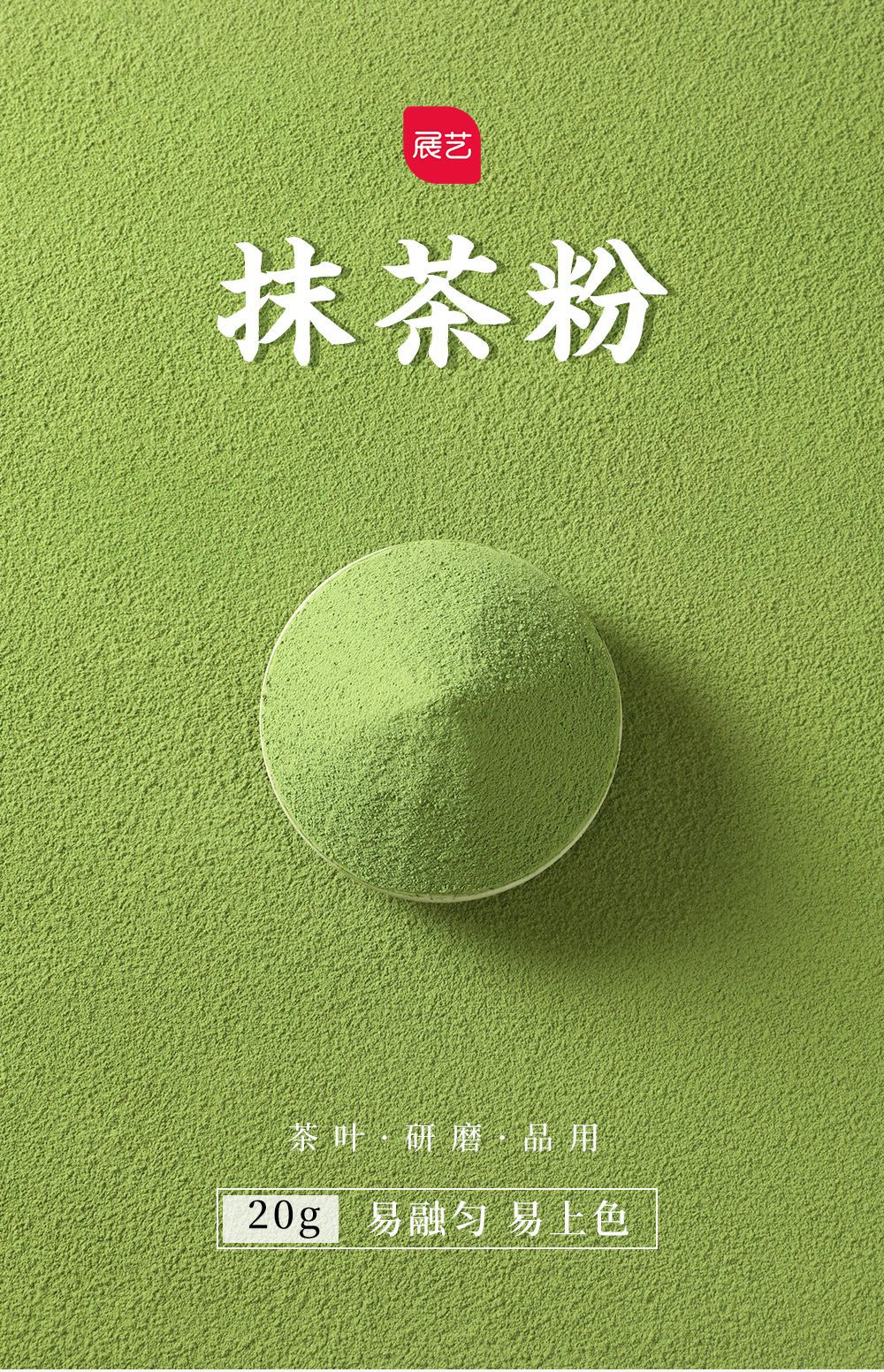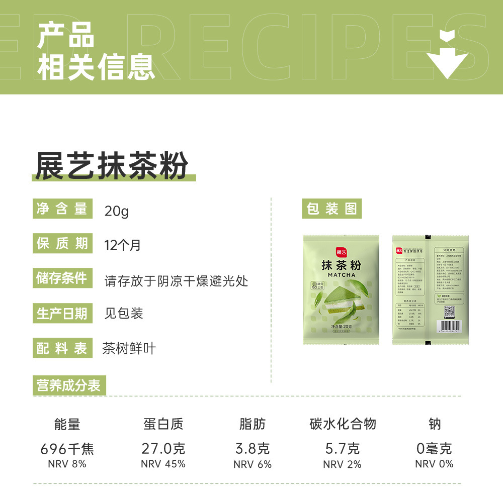 Чайный порошок матча Zhan Yi, 20 г, пищевой, из фруктов и овощей, для выпечки, напитков и кондитерских изделий