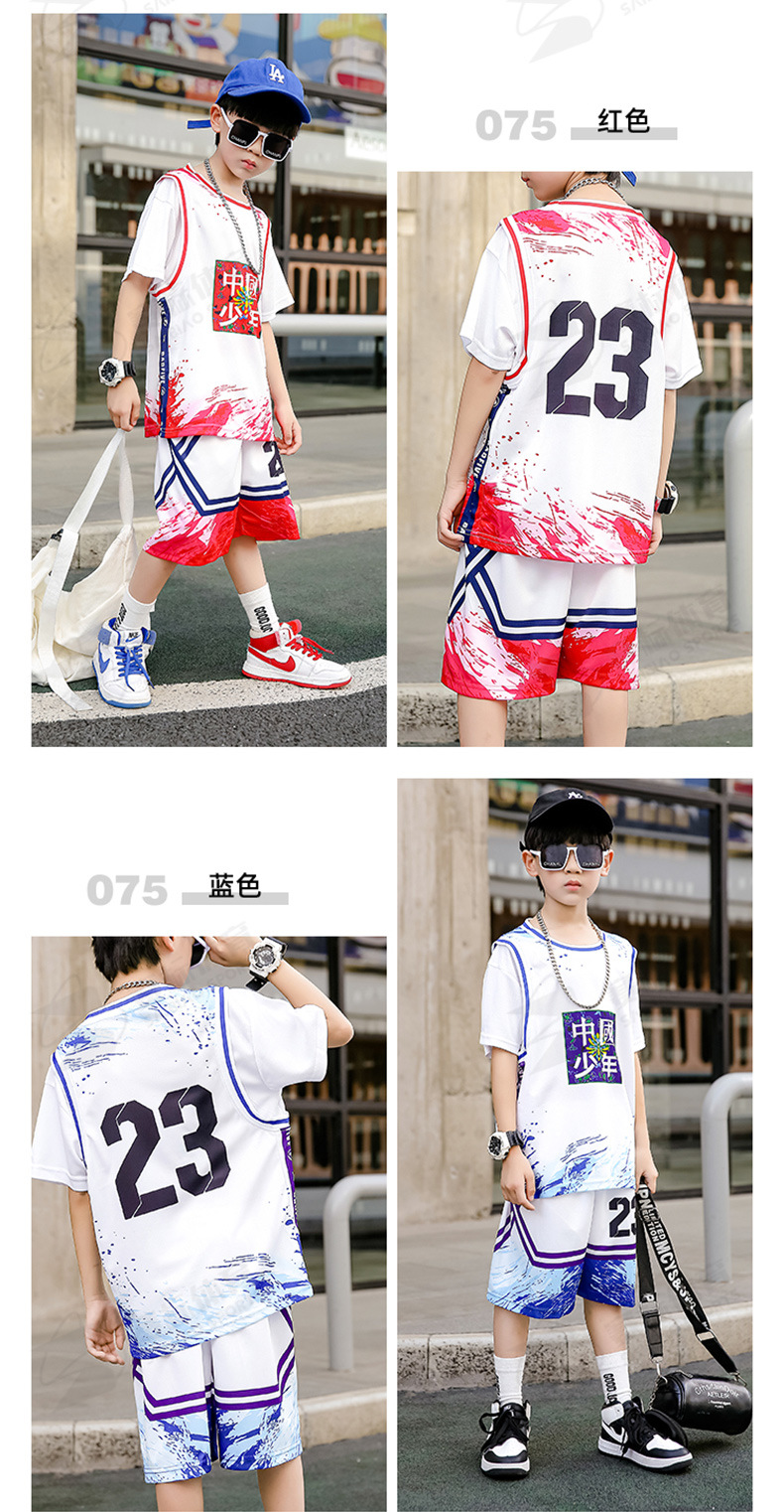 Детская баскетбольная форма из двух частей, летняя одежда для мальчиков и девочек, джерси для детей старшего возраста, спортивный костюм с короткими рукавами, дышащий и быстросохнущий.