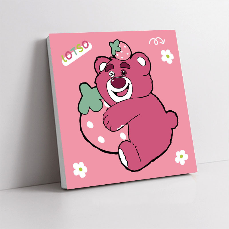 Детская ручная роспись акриловой раскраска DIY Цифровая картина маслом пейзаж пара мультфильм анимация клубничный медведь 20*20 бесплатная доставка