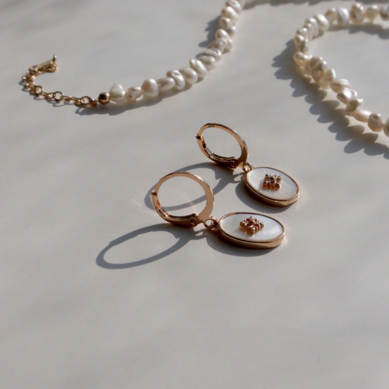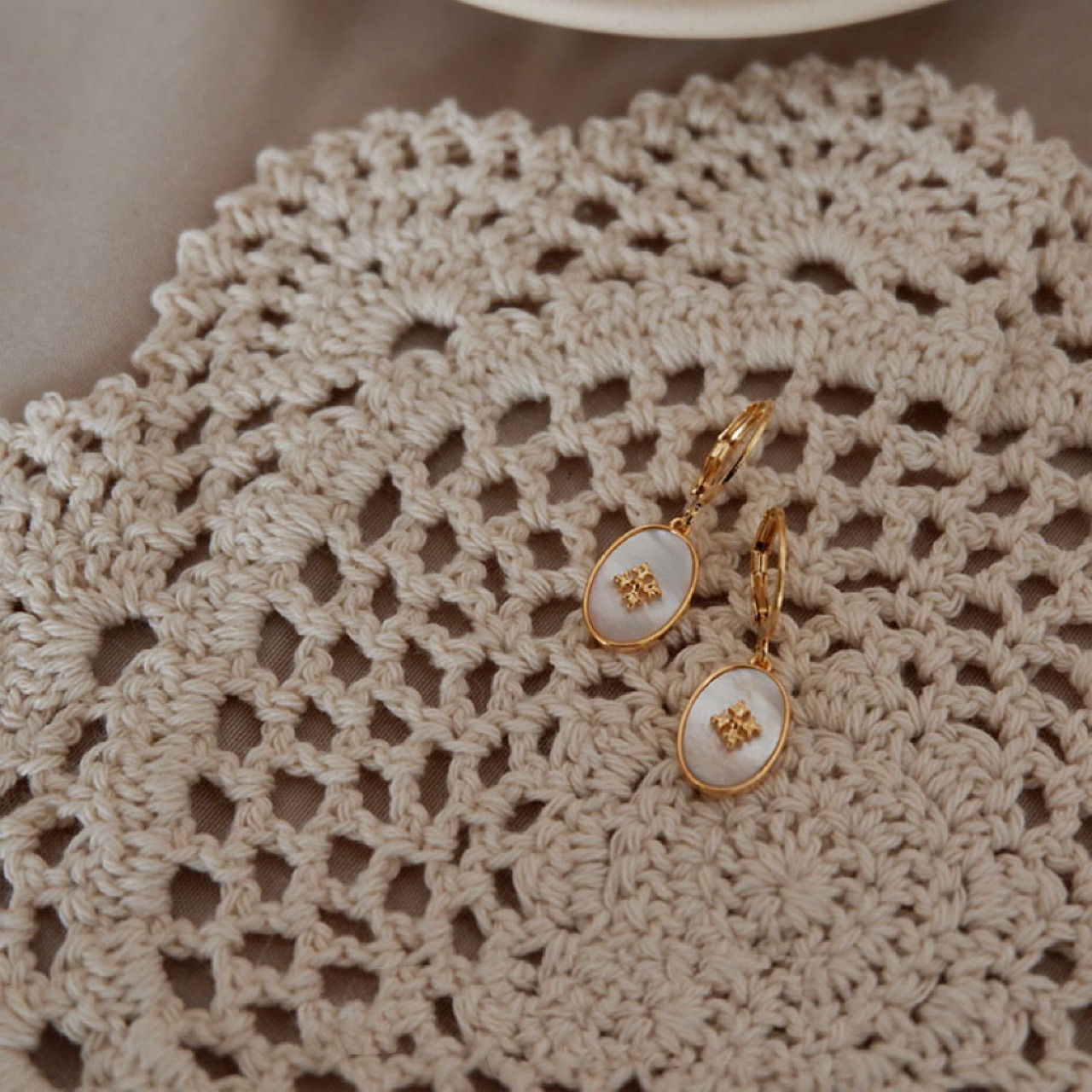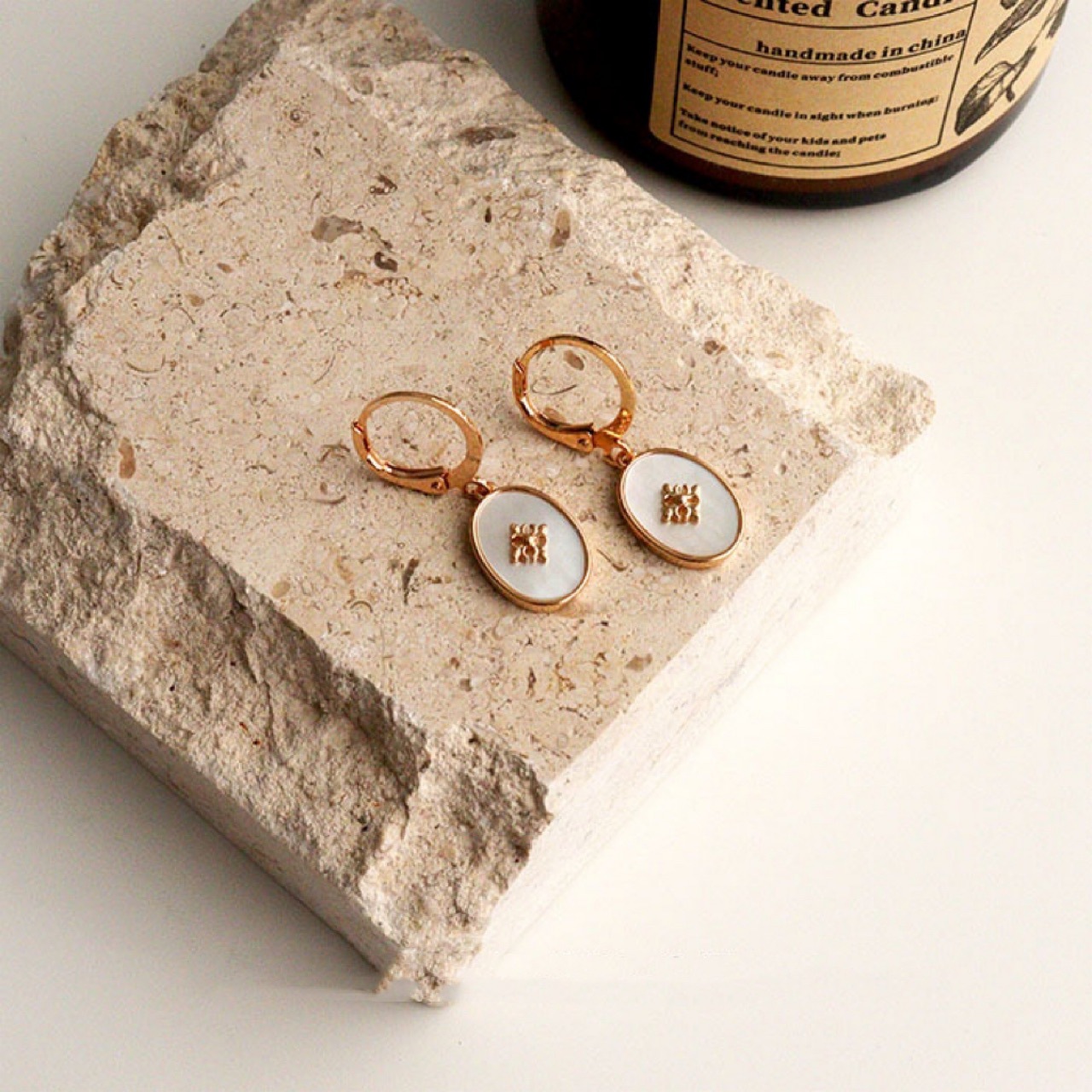 Овальные ретро серьги с глубоководными ракушками, медная толстая Золотая Пряжка для ушей, осенне-зимние новые серьги, белые женские ракушки с принтом бабочки