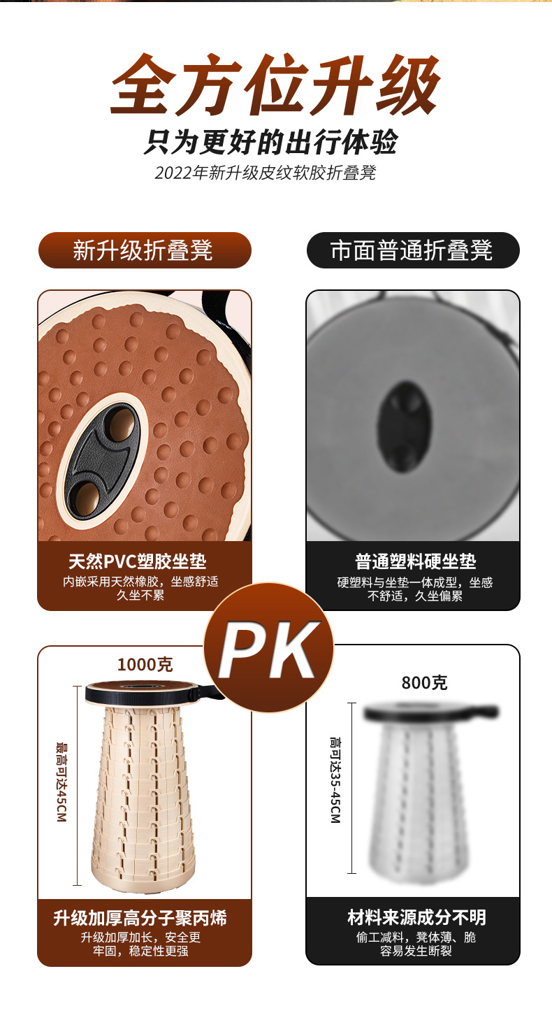 Мягкий резиновый складной стул Открытый портативный регулируемый телескопический стул для путешествий Термоусадочное сиденье Ночной рынок Поезд Мазар