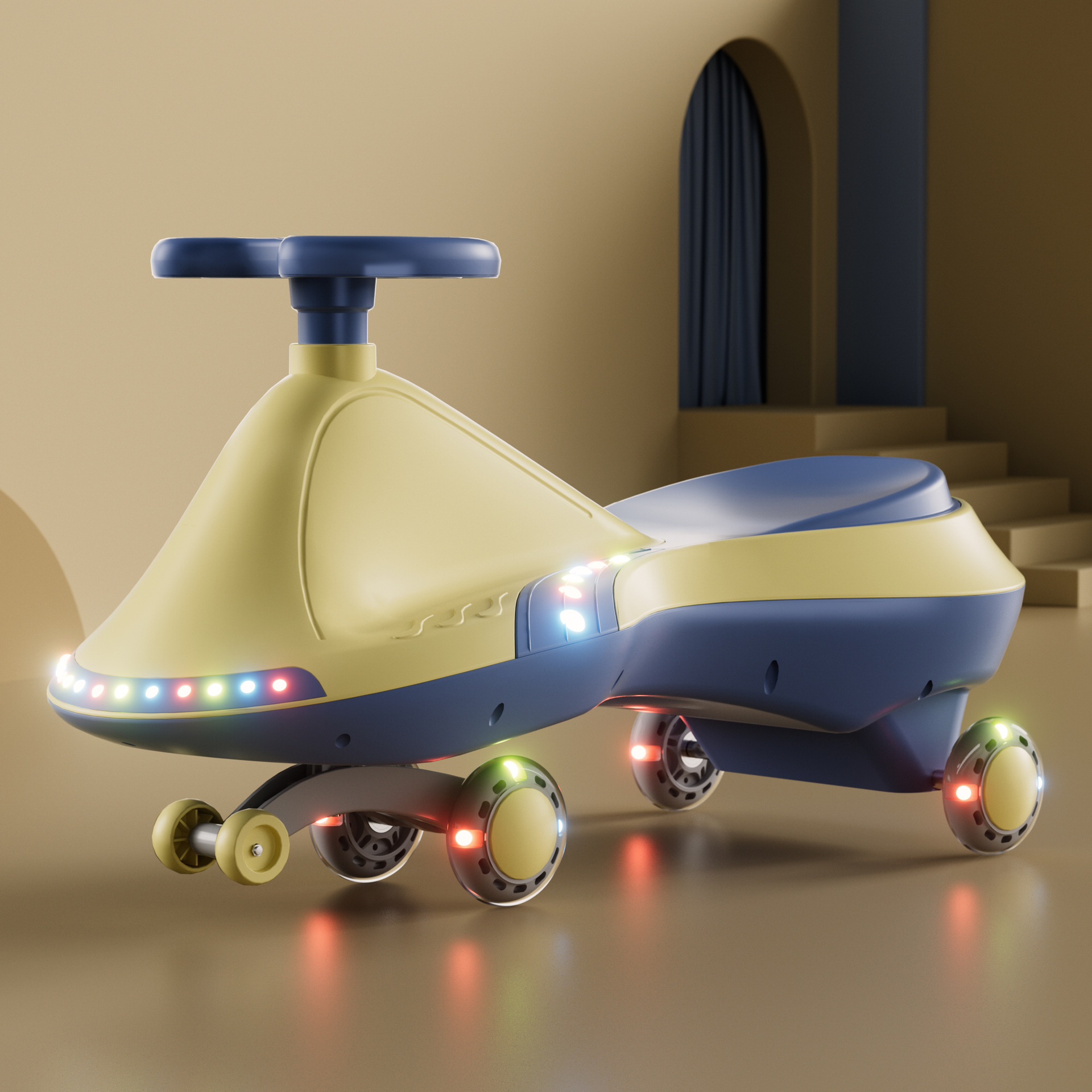新款儿童摇摆车,双层车身带灯光音乐,颜色 太空灰 清新绿 海蓝色 粉色 红色 绿色 蓝色 蓝黄色 橙蓝色 黄色 一件6台颜色混装