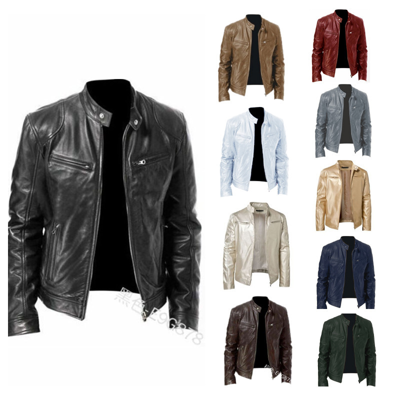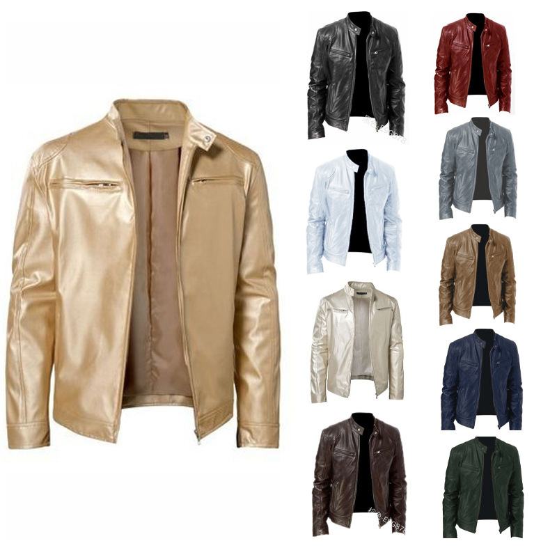 2023 Внешняя торговля Европейская и американская мужская одежда Мужская кожаная куртка Мужская Подростковая куртка с вертикальным воротником Панк Мужская мотоциклетная кожаная куртка