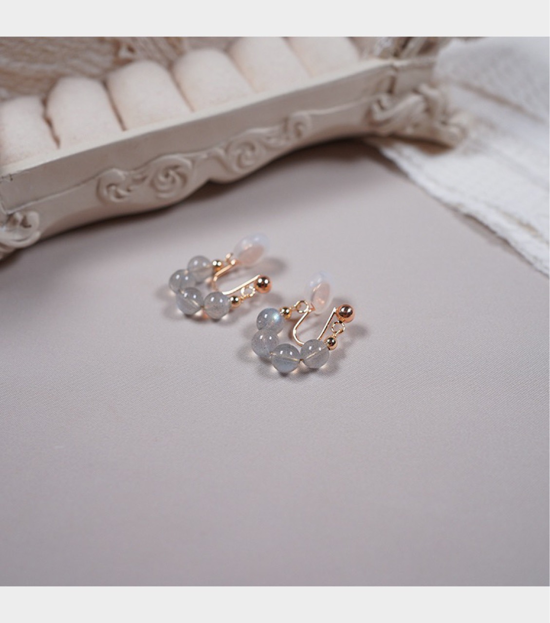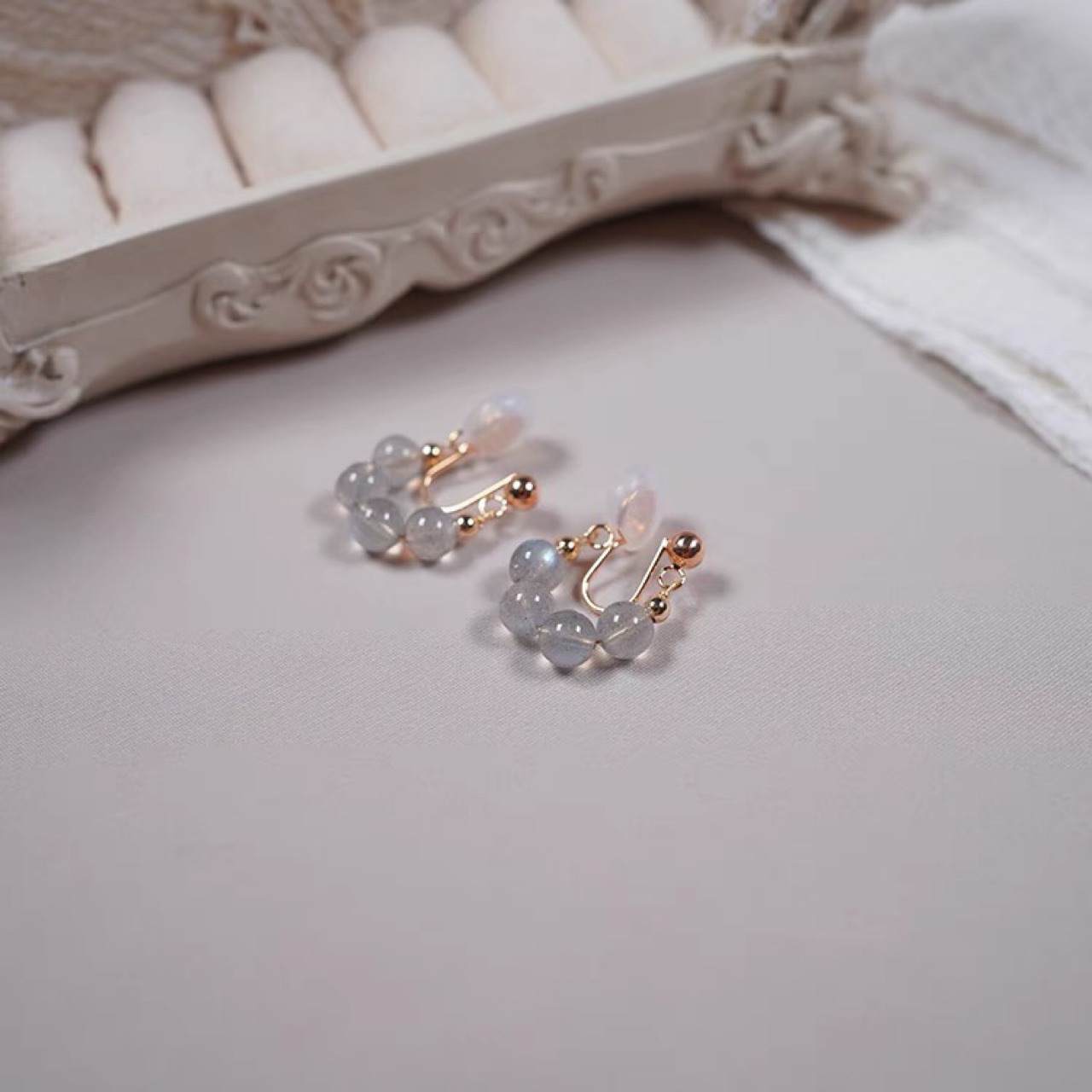 Японская и корейская мода натуральный синий лунный свет серый лунный камень сильный свет ледяной кристалл зажим для ушей элегантные женские серьги-клипсы