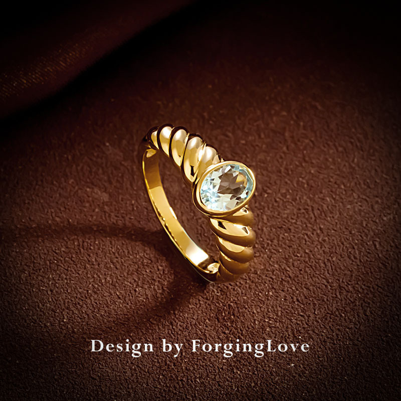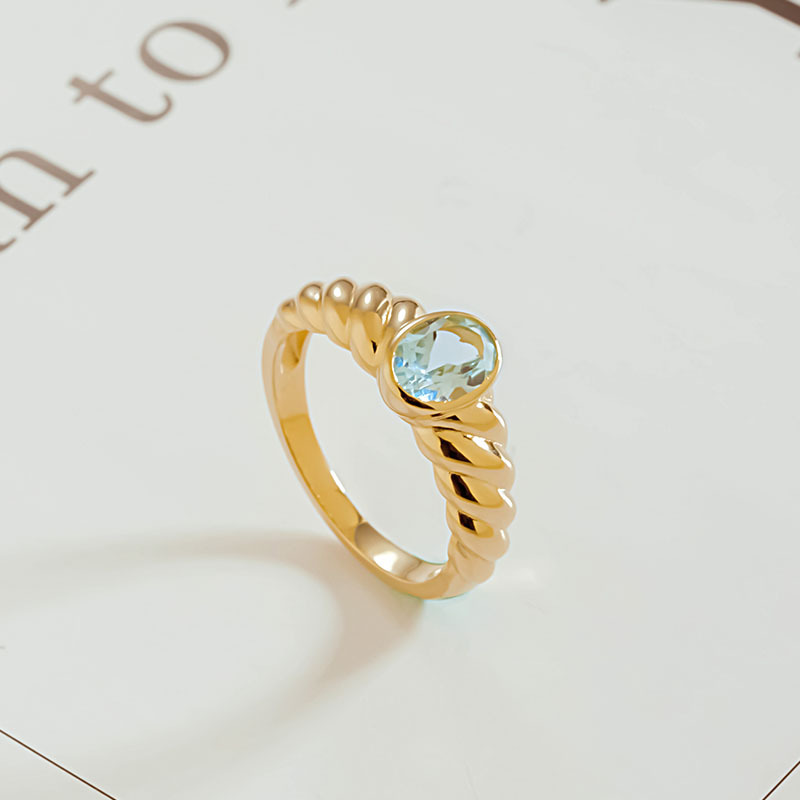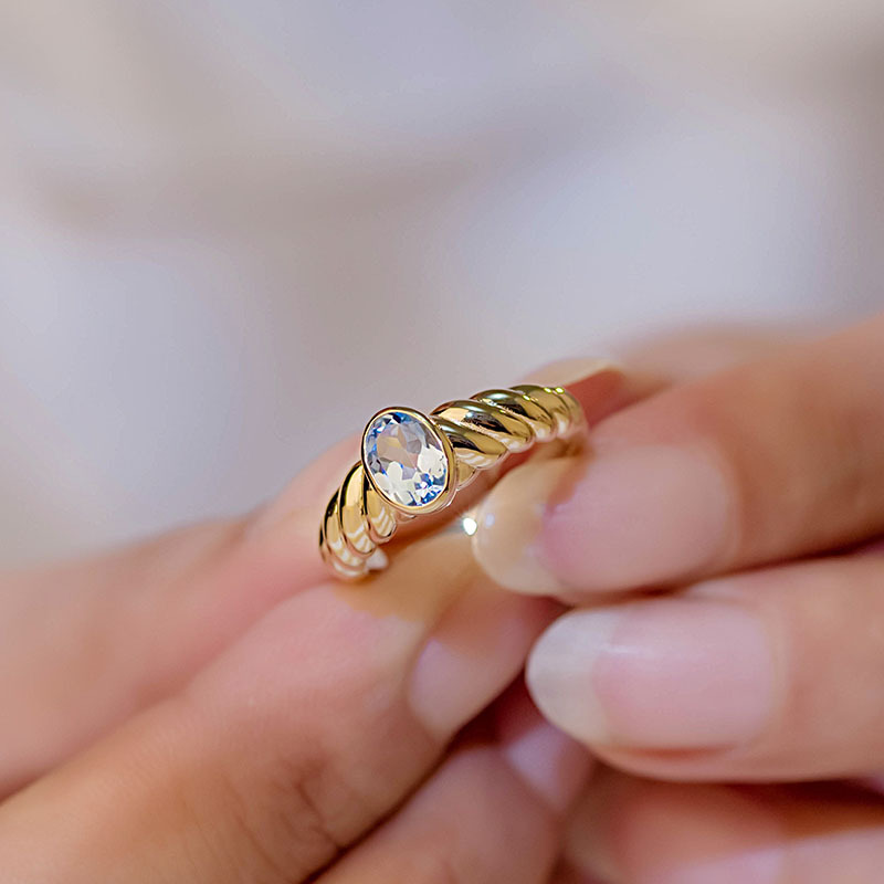 Чистое золото 14K Кольцо женщин инкрустированные Натуральный топаз простое золото твист цветок старинные золотые украшения 31048