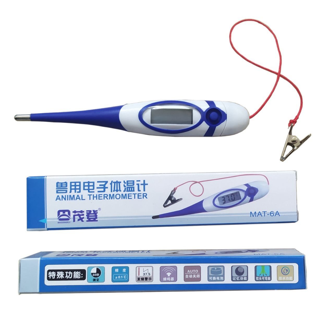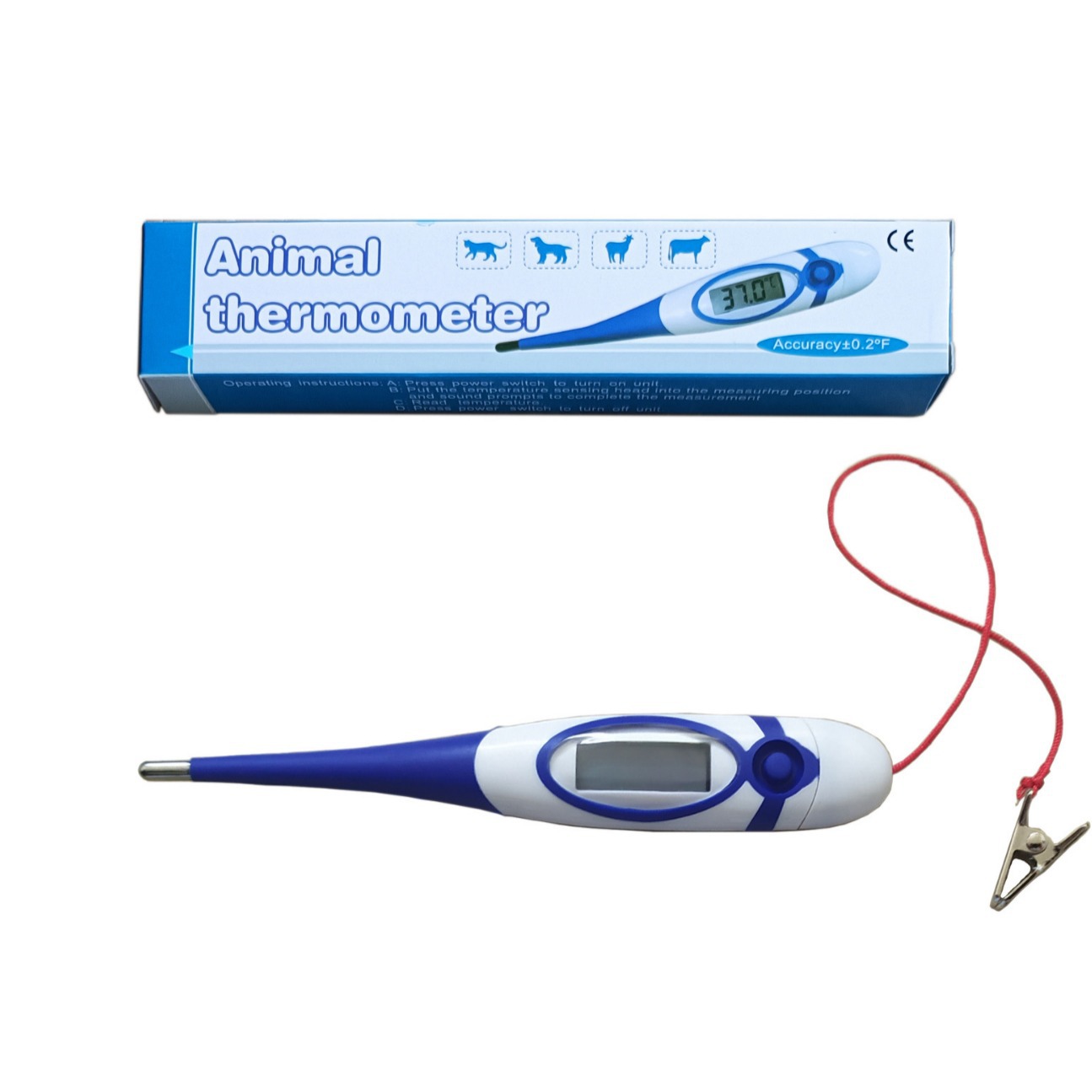Термометр для домашних животных (кошек, собак, свиней, крупного рогатого скота и овец), с мягким наконечником, водонепроницаемый, для быстрого измерения температуры, с термометром на веревочном зажиме.