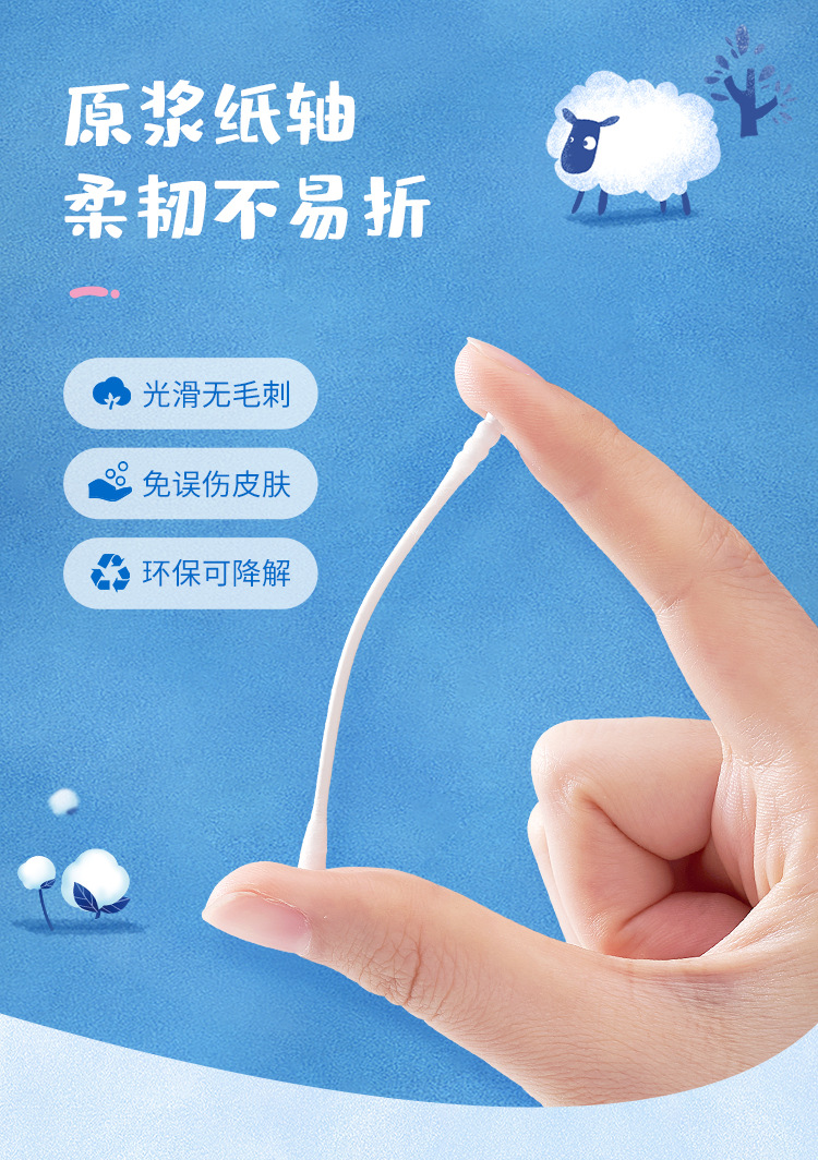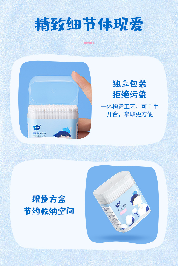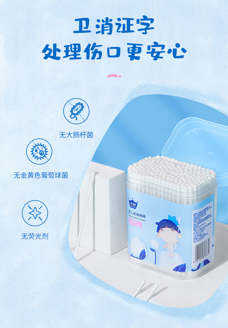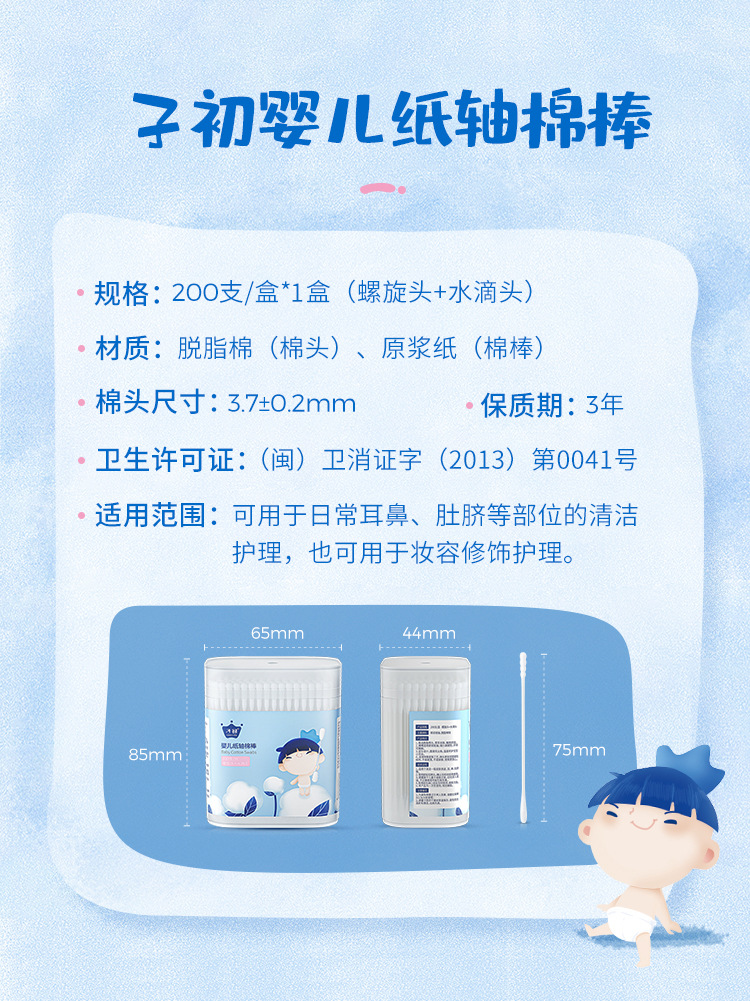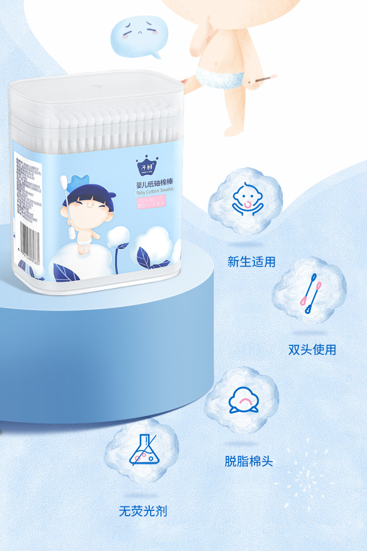 Детский бумажный стержень ватный тампон 1 коробка = 200