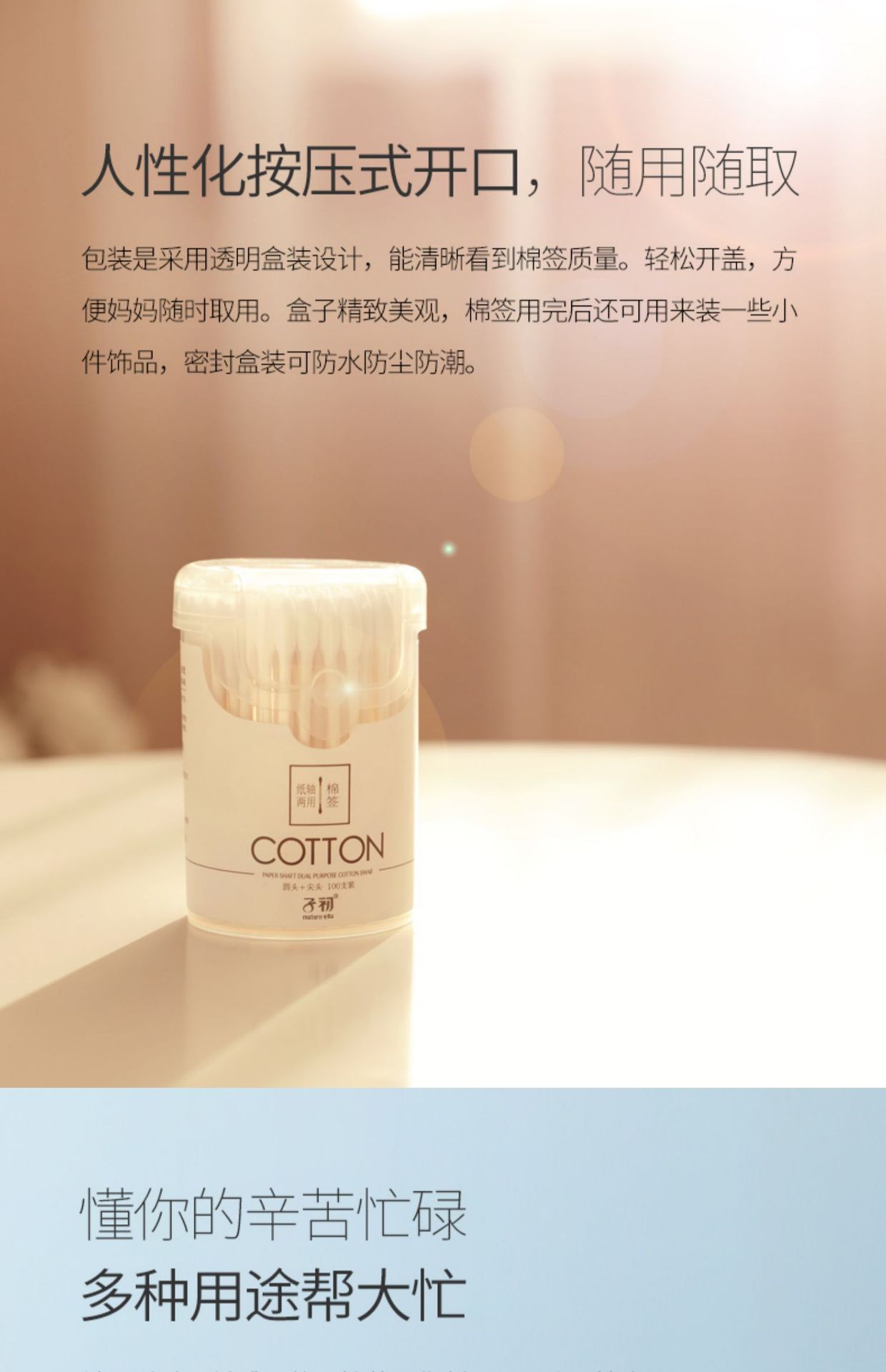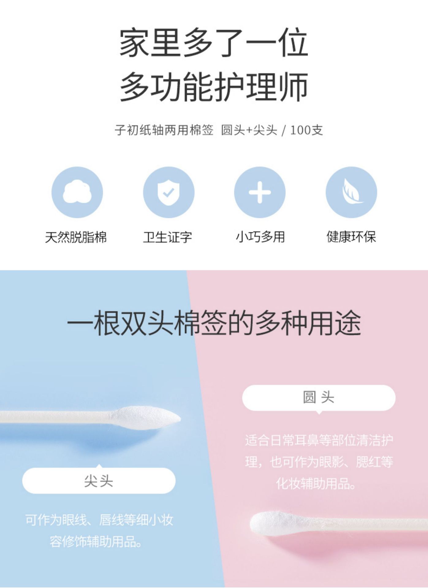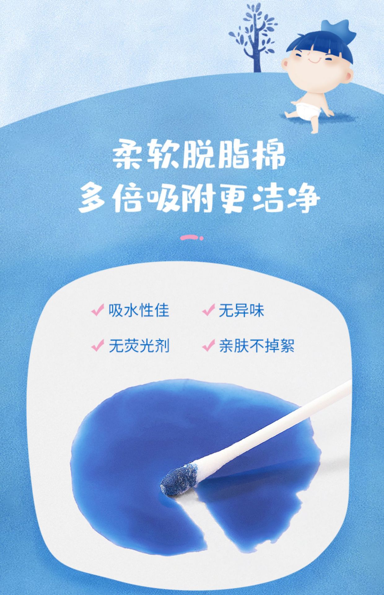 Детский бумажный стержень ватный тампон 1 коробка = 200