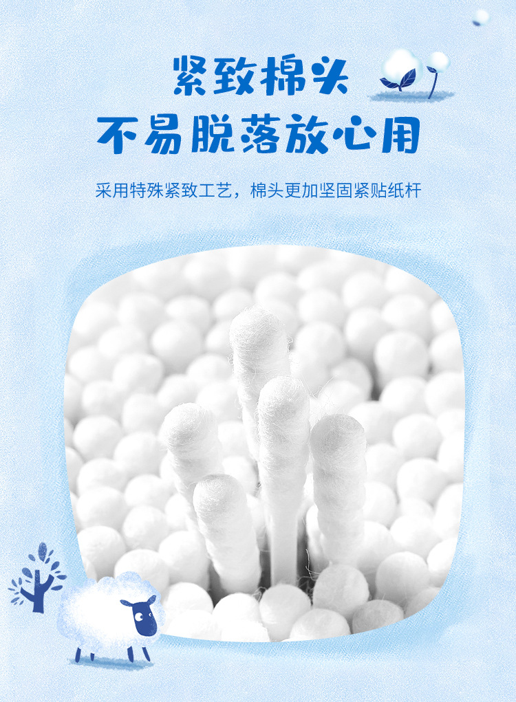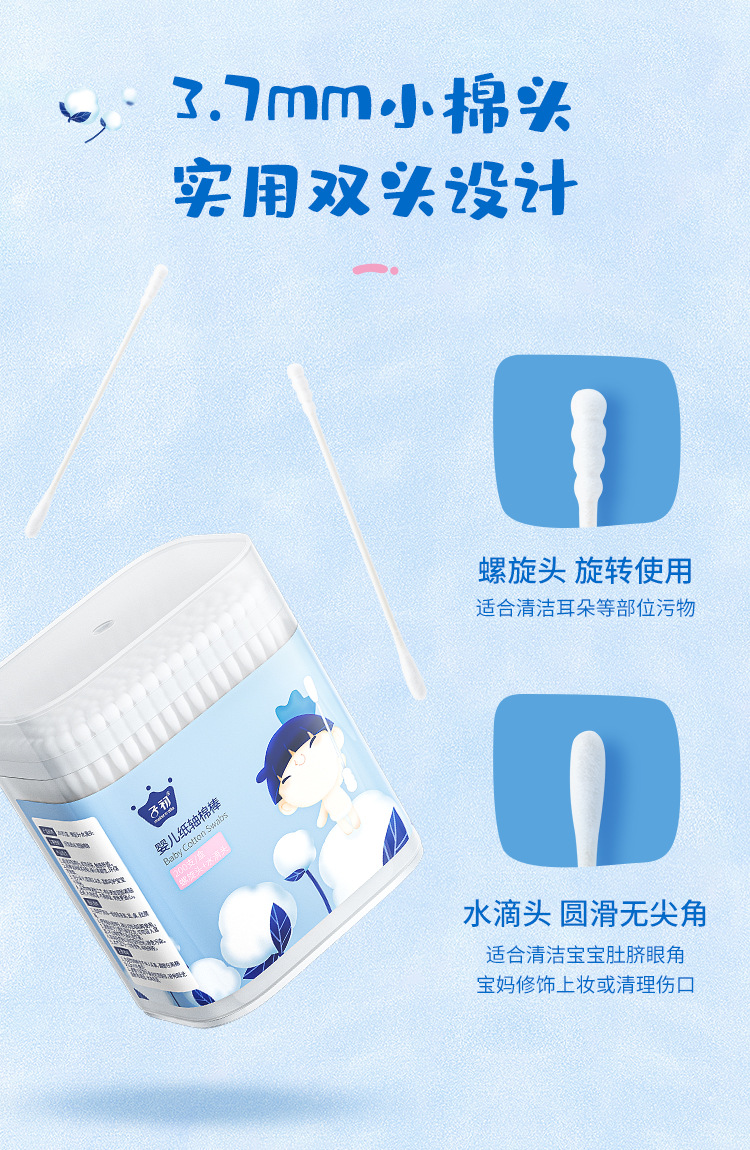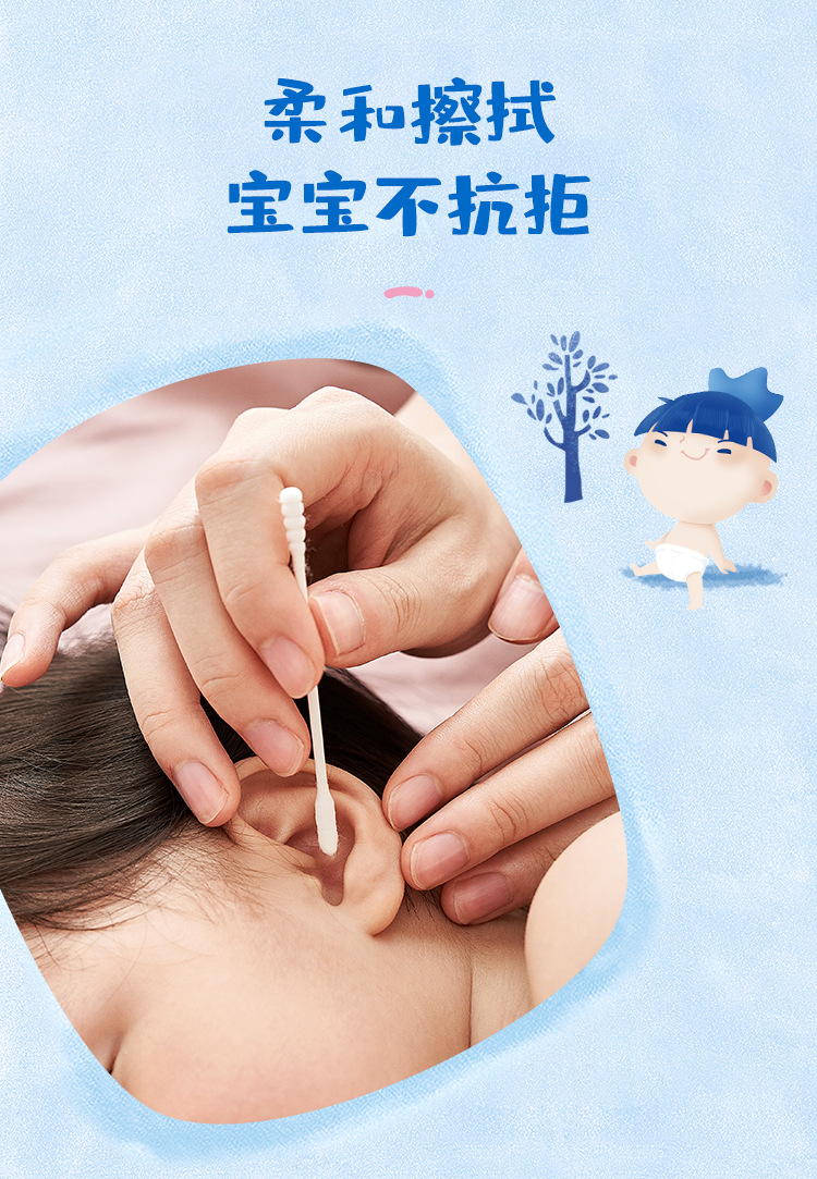 Ватные палочки для новорожденных, специально для младенцев, двусторонние для ушей и носа, 200 штук в упаковке, ватные палочки для младенцев и детей.