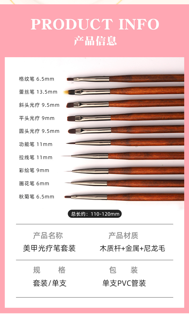 Трансграничная ручка для ногтей костюм ручка для рисования сандаловое дерево стержень Тяговая линия ручка 10 загружена светотерапевтическая ручка принадлежности для ногтей ручка оптом
