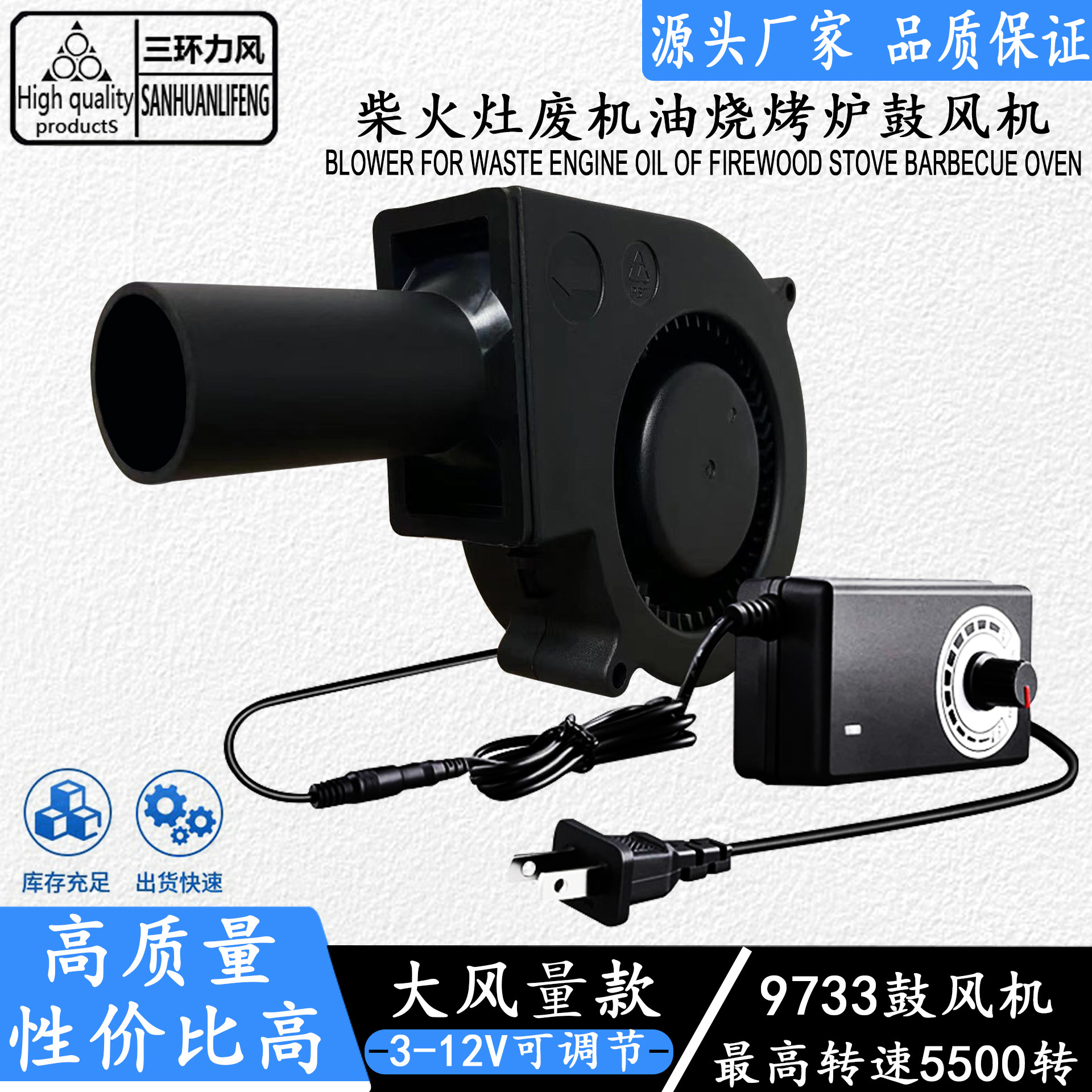 9733 12В 2.85А турбовентилятор с высоким расходом воздуха для надувных кукол, барбекю, дровяных печей, печей на отработанном масле