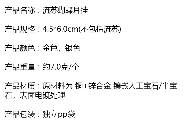 Tiktok в том же стиле бабочка ушной крючок ушной зажим безушные серьги ниша темперамент кисточка зажим для ушей женские легкие Роскошные серьги