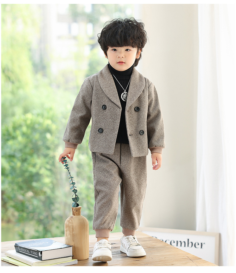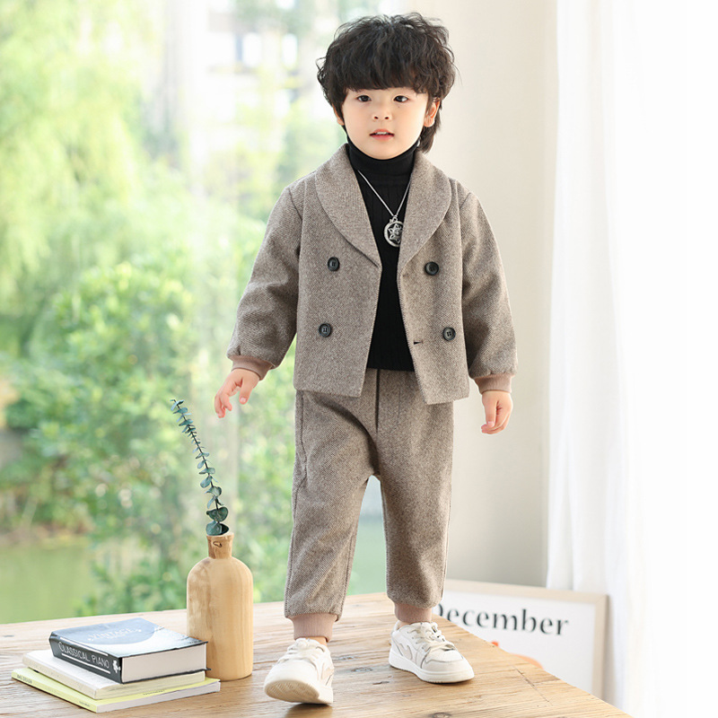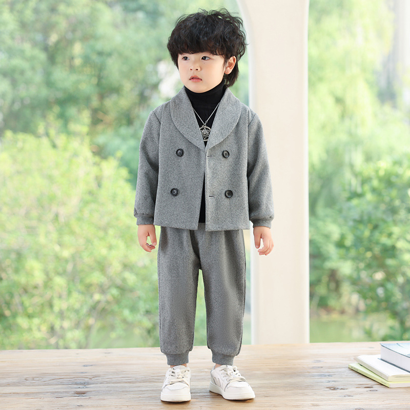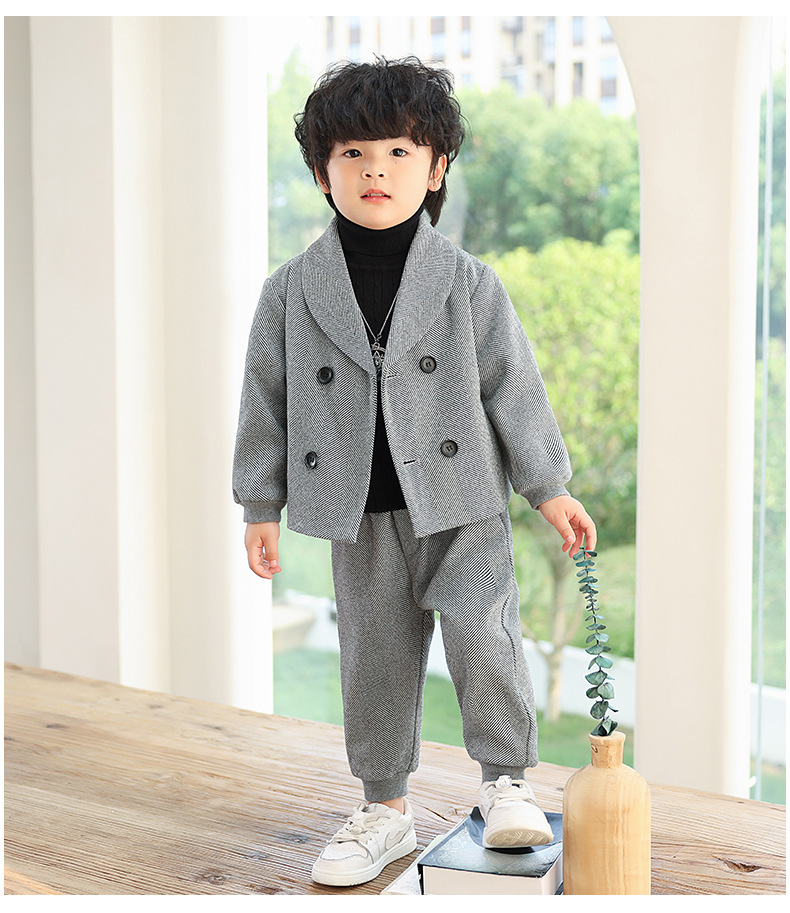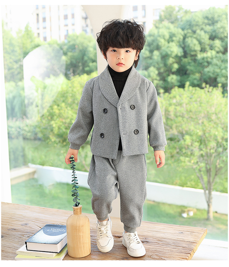 Детский повседневный костюм, корейский Костюм в полоску на флисовой подкладке, Детский костюм для свадебного выступления с цветами