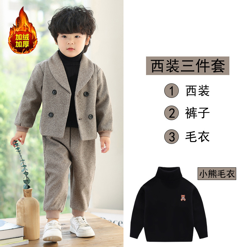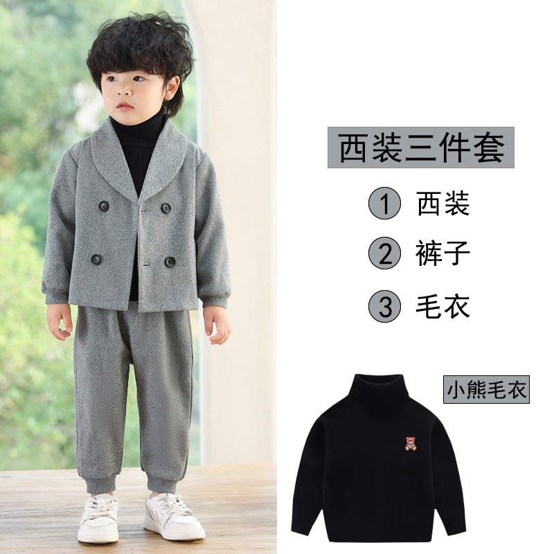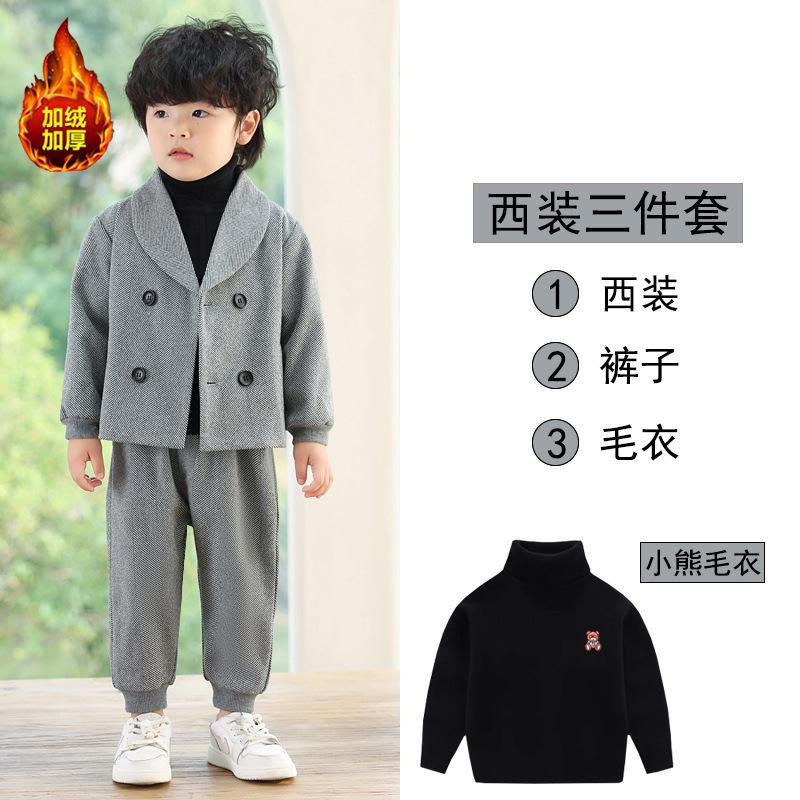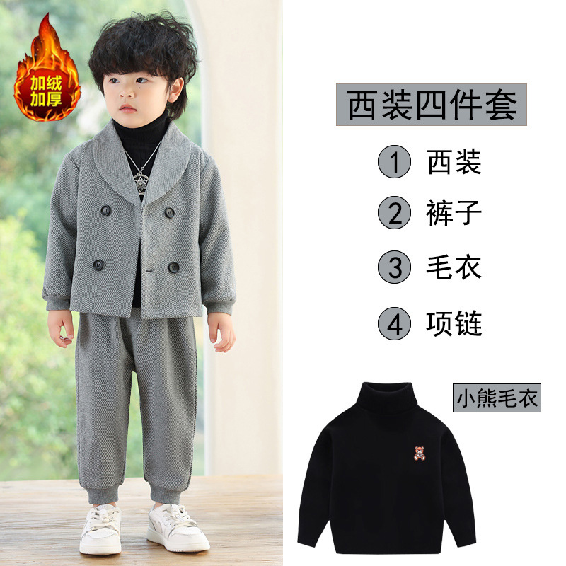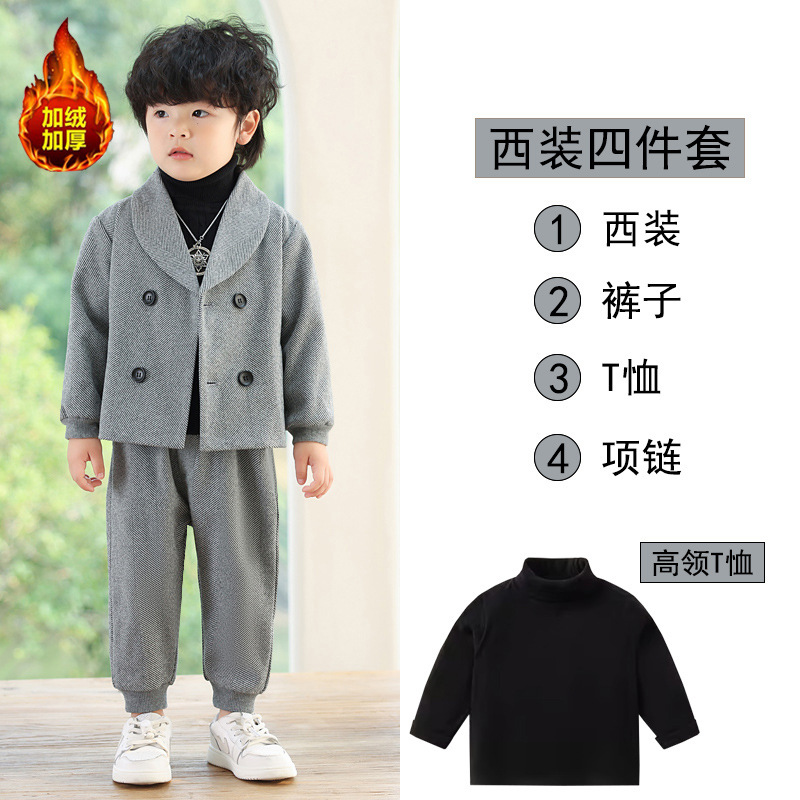 Детский повседневный костюм, корейский Костюм в полоску на флисовой подкладке, Детский костюм для свадебного выступления с цветами