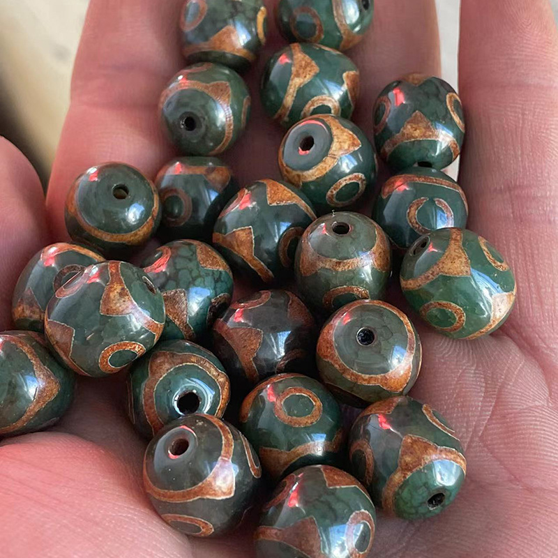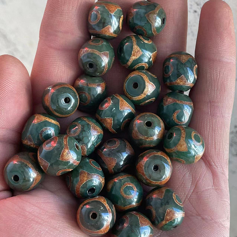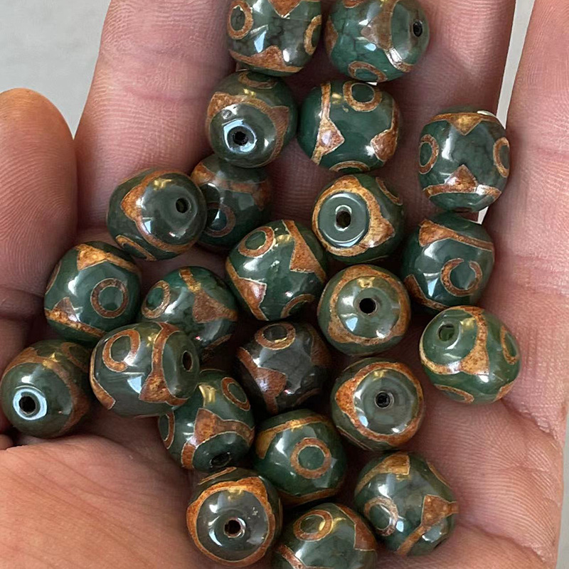 Тибетский натуральный зеленый халцедон Агат, глянцевая яркая поверхность 14✖16 мм горный ячмень для зеленых старых трехглазых бусин