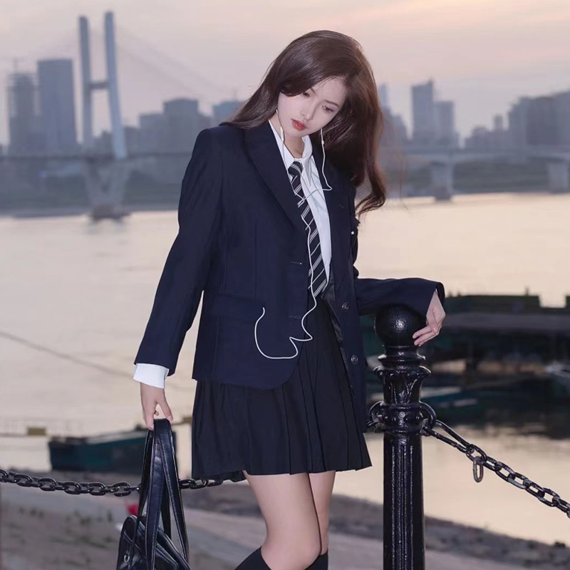 Прямые поставки с фабрики: оригинальный костюм JK, женский пиджак в японском стиле, средней длины, в стиле преппи, черный и голубой, униформа.