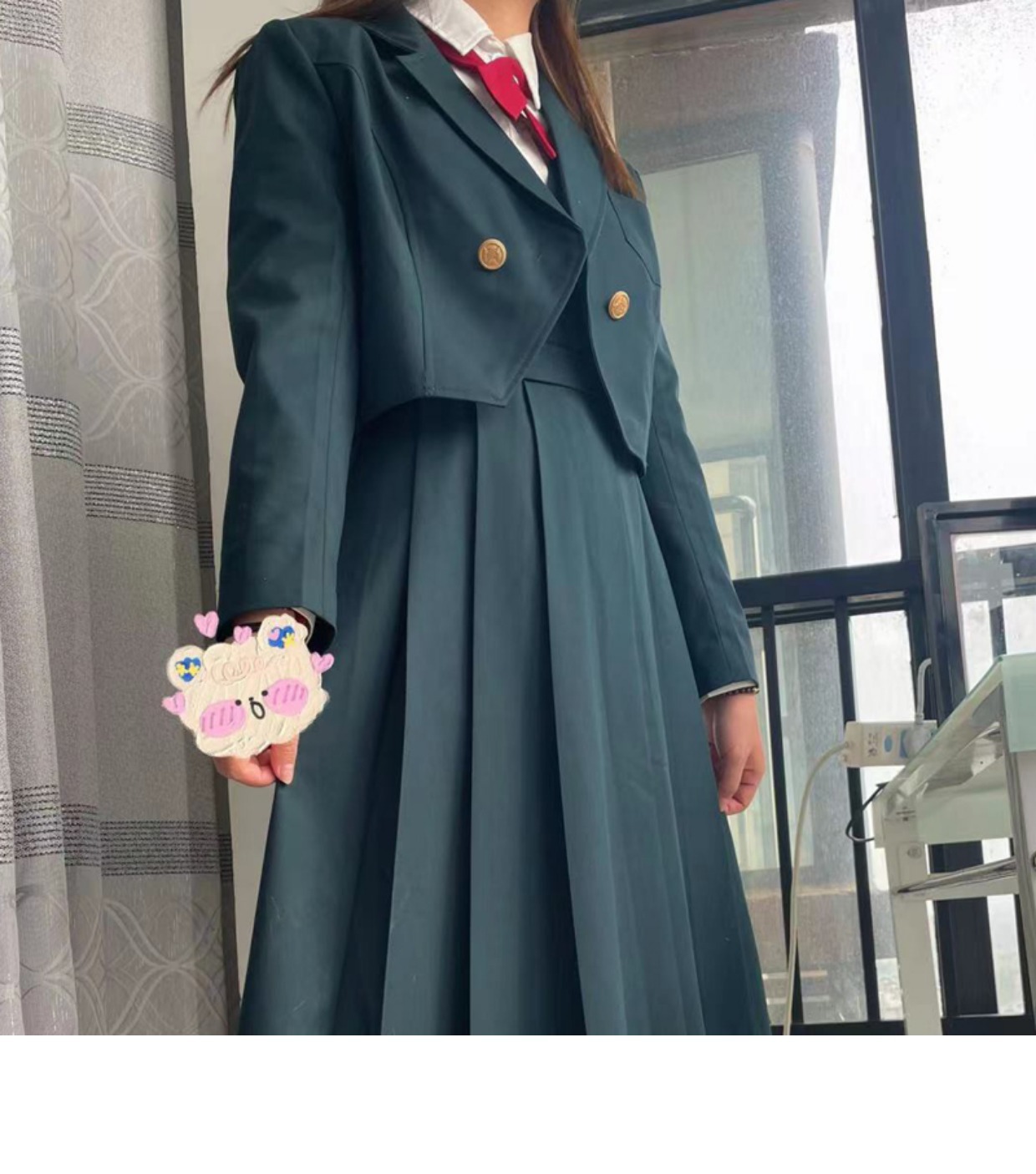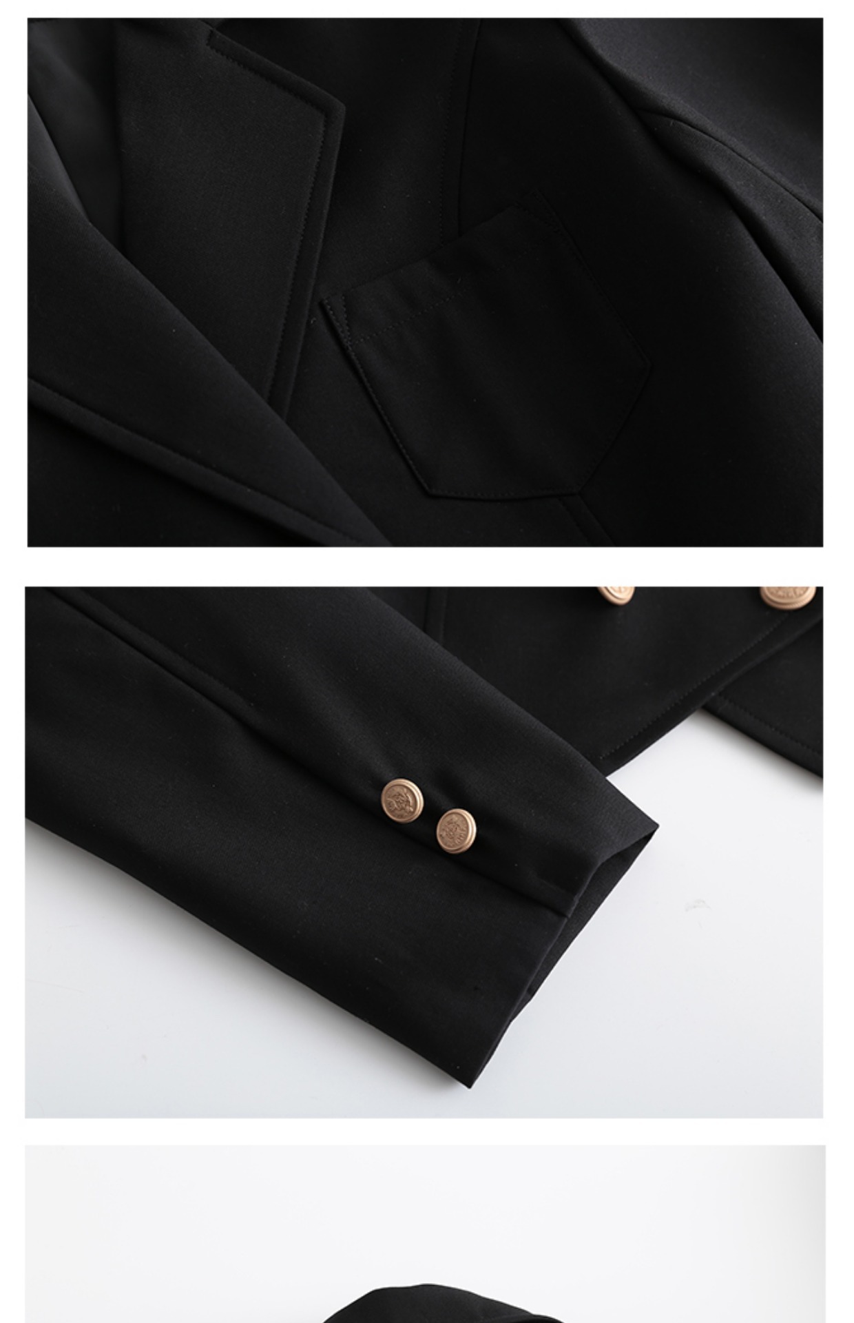 Черный короткий костюм на одной пуговице; Голубой короткий костюм на одной пуговице; Бордовый короткий костюм на одной пуговице; Темно-зеленый короткий костюм на одной пуговице