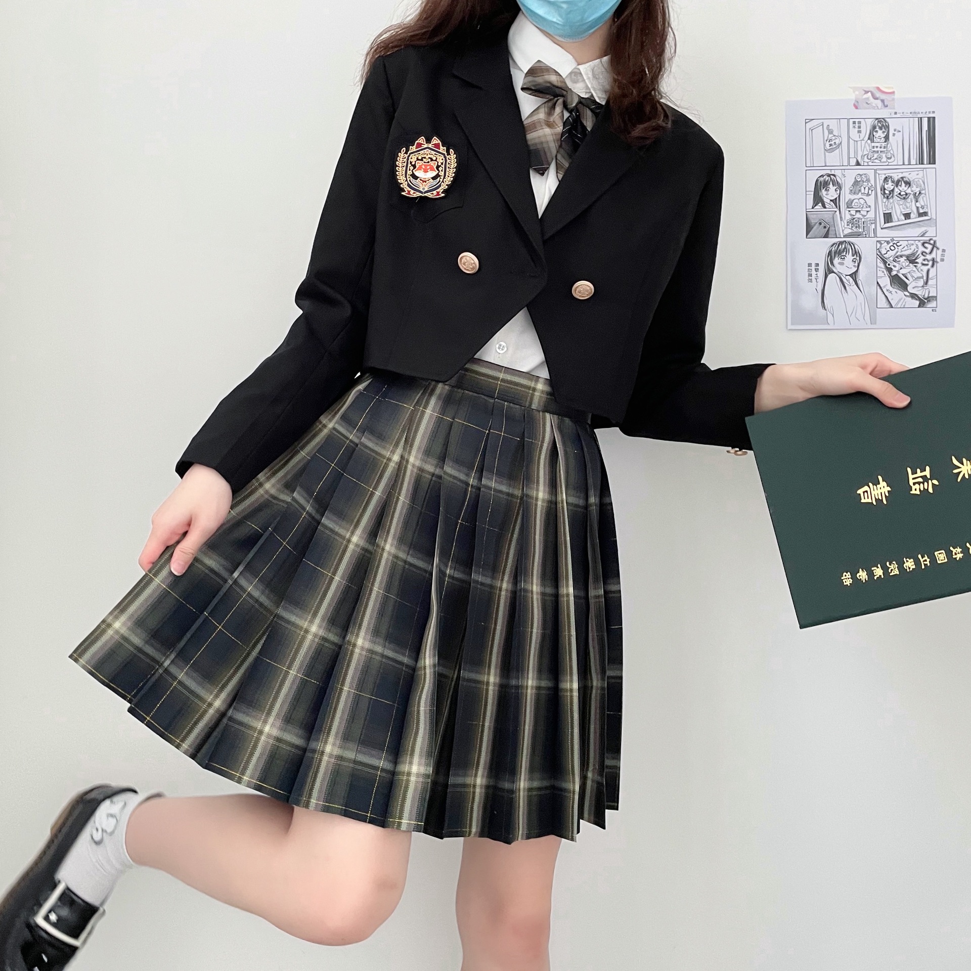 Прямые поставки с фабрики: оригинальный JK униформа, японский базовый стиль, короткий жакет для девочек, костюм в цвете голубой и черный, осень-зима, в наличии.