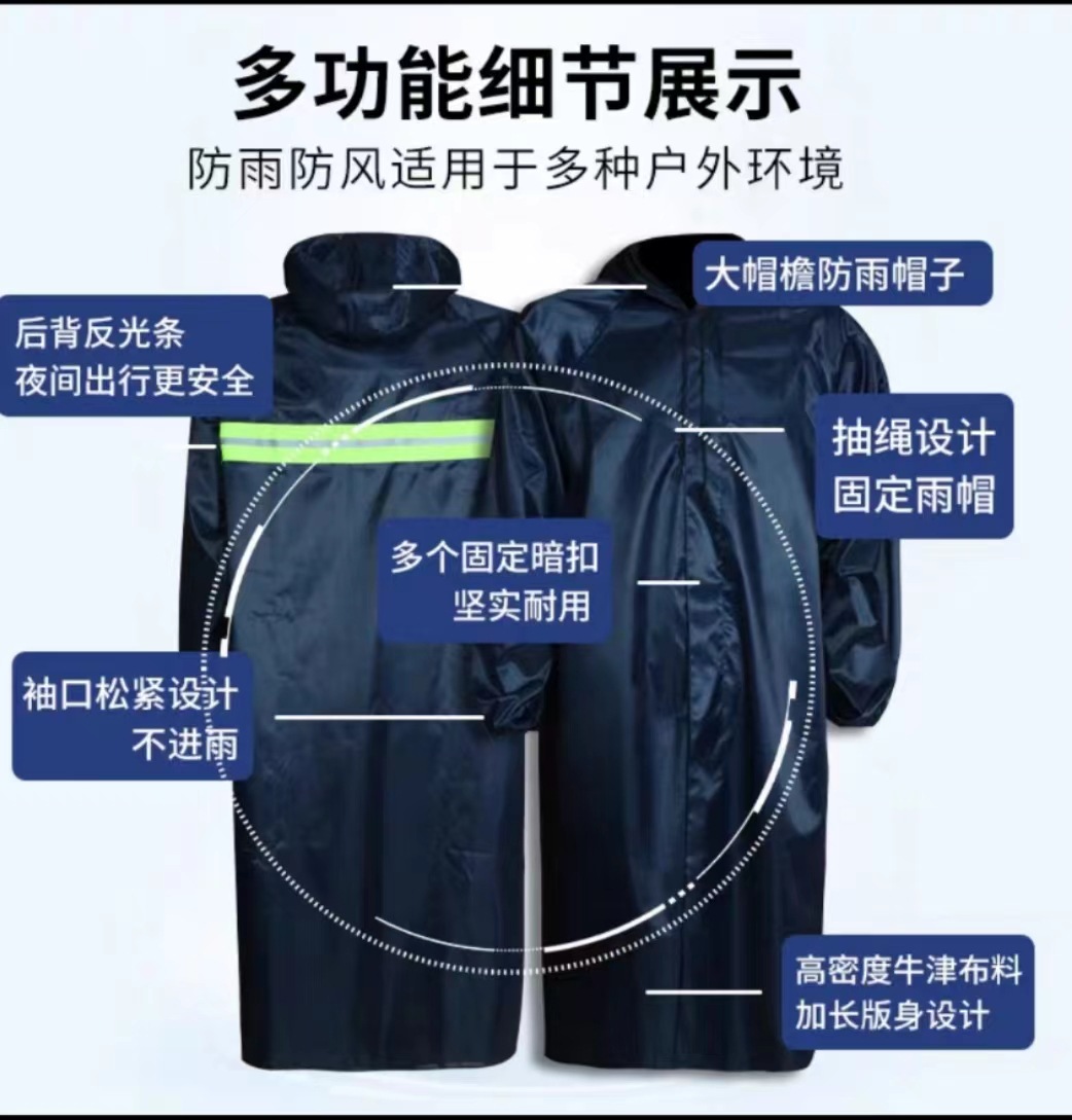 Дождевик для санитарии Обязанность Ветровка для защиты труда на открытом воздухе Длинная ткань Оксфорд Взрослый Пешие прогулки Светоотражающий цельный плащ