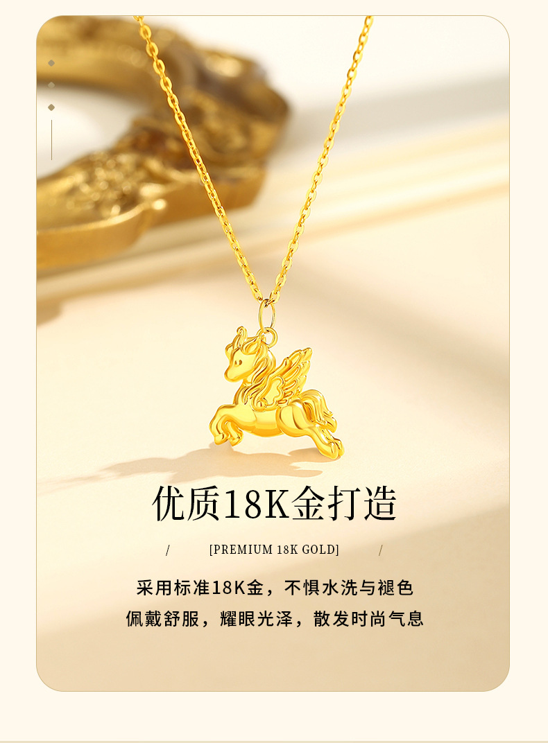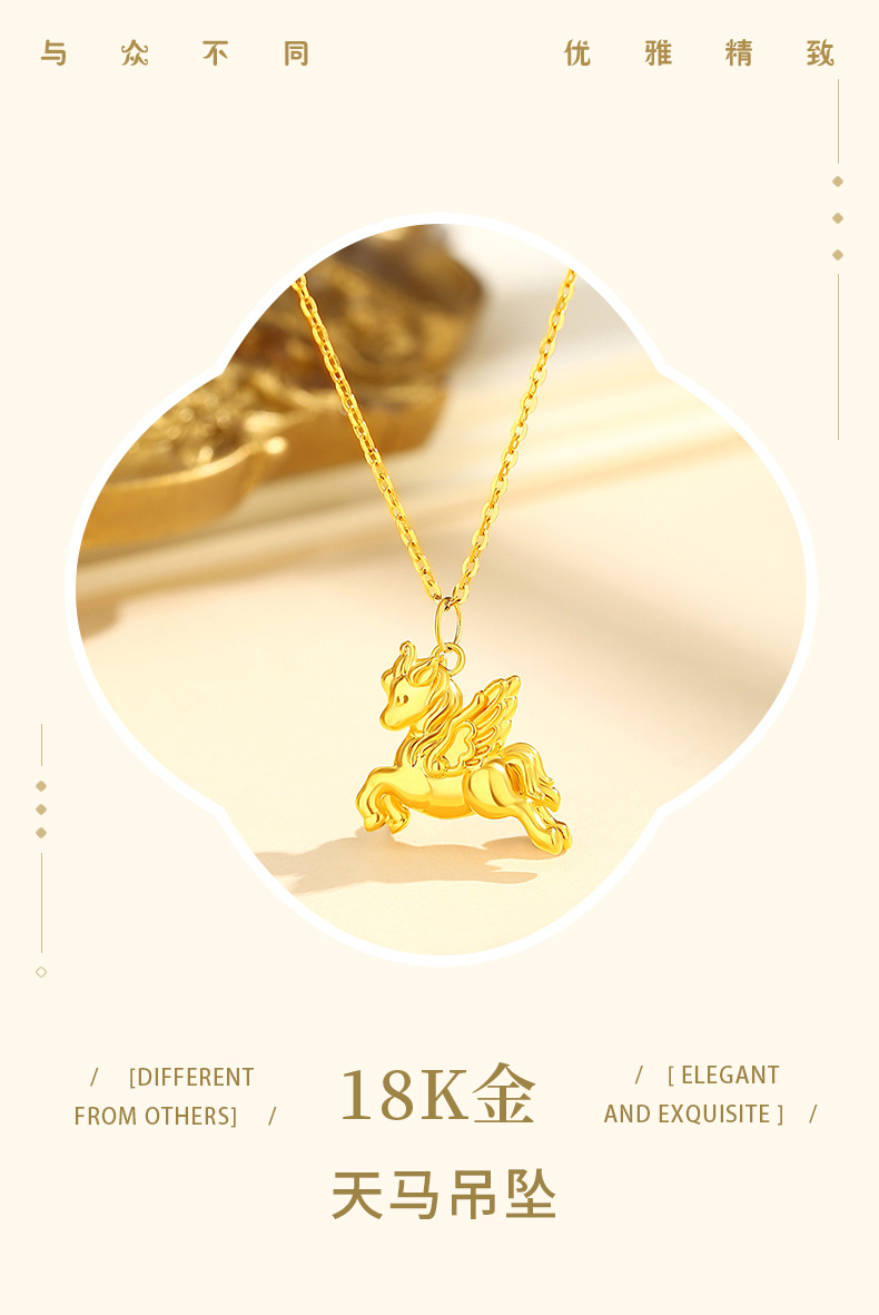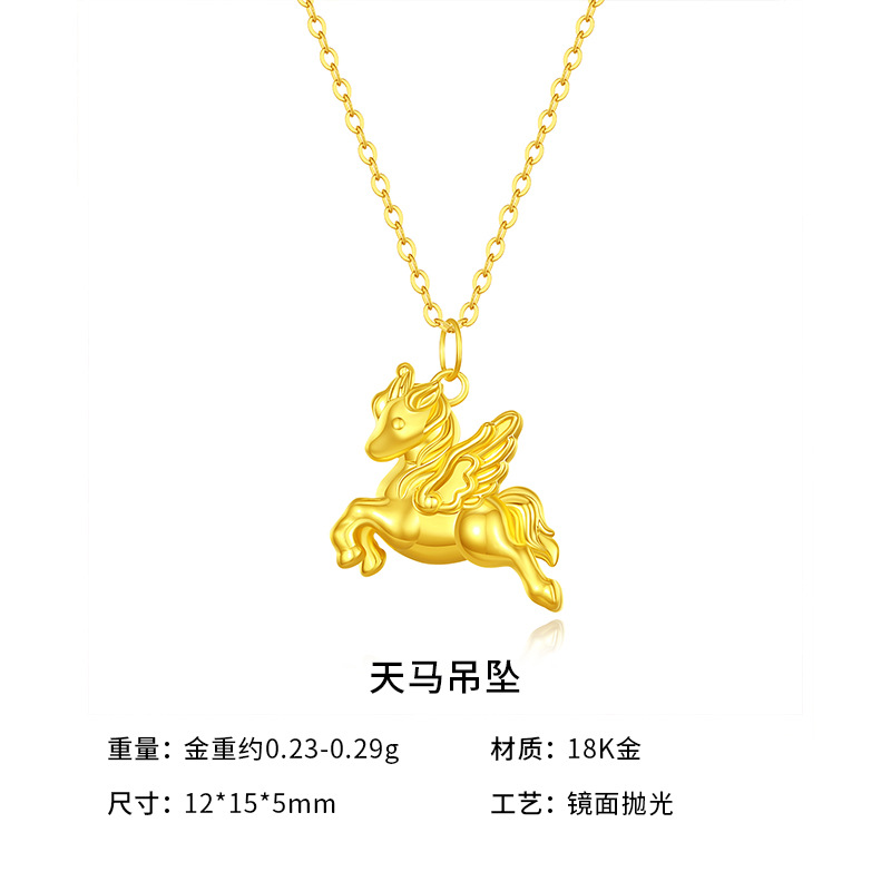 Подвеска «Пегас» из 18-каратного золота; Цепочка O из 18-каратного золота (AU750) Длина: 38+3+2