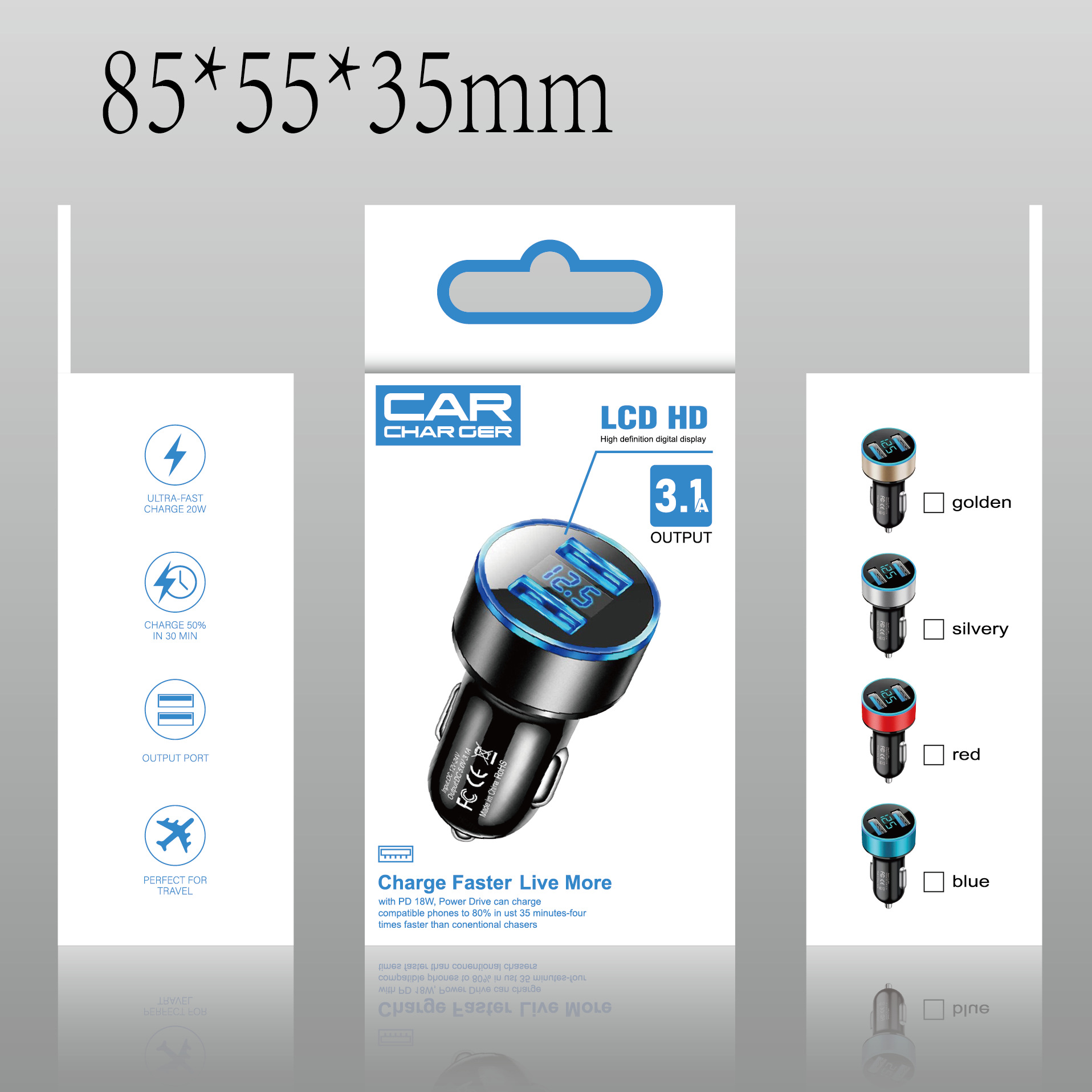 Обнаружение напряжения цифровой дисплей 22,5 W полный протокол (мешок OPP) черный; Обнаружение напряжения цифровой дисплей 22,5 W полный протокол (мешок OPP) Серебро; Автомобильное зарядное устройство 3.1A с фиксированным цифровым дисплеем 12,5, черный; 12,5 фиксированный цифровой дисплей автомобильное зарядное устройство 3.1A (мешок OPP) золото; Автомобильное зарядное устройство с фиксированным цифровым дисплеем 12,5 3.1A (мешок OPP) Silver; 12,5 автомобильное зарядное устройство с фиксированным цифровым дисплеем 3.1A (opp bag) Blue; 12,5 фиксированный цифровой дисплей автомобильное зарядное устройство 3.1A (мешок OPP) красный; Цифровой дисплей обнаружения напряжения 3.1A (мешок OPP) Черный; Цифровой дисплей обнаружения напряжения 3.1A (мешок OPP) Silver; Обнаружение напряжения цифровой дисплей 3.1A (мешок OPP) золото; Обнаружение напряжения цифровой дисплей 3.1A (мешок OPP) синий; Цифровой дисплей обнаружения напряжения 3.1A (мешок OPP) красный; 22,5 W полный протокол цифровой дисплей Супер быстрая зарядка (мешок OPP) цвет Примечания; 40W полный протокол цифровой дисплей Супер быстрая зарядка (мешок OPP) цвет Примечания; 66W полный протокол цифровой дисплей Супер быстрая зарядка (мешок OPP) цвет Примечания; упаковочная коробка