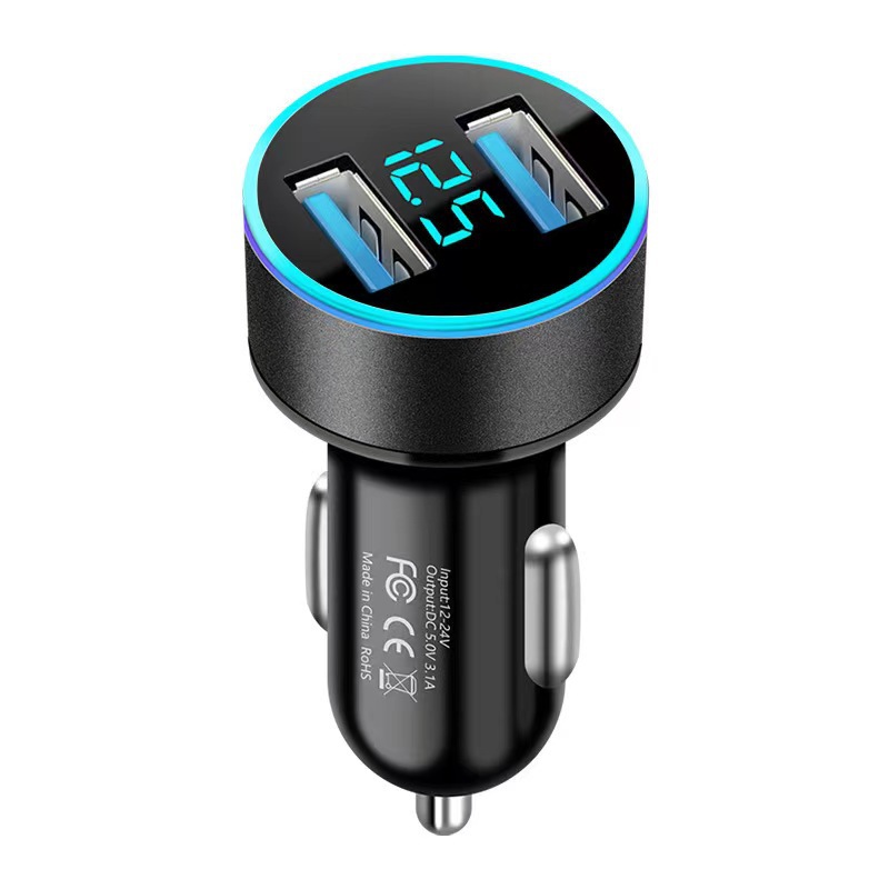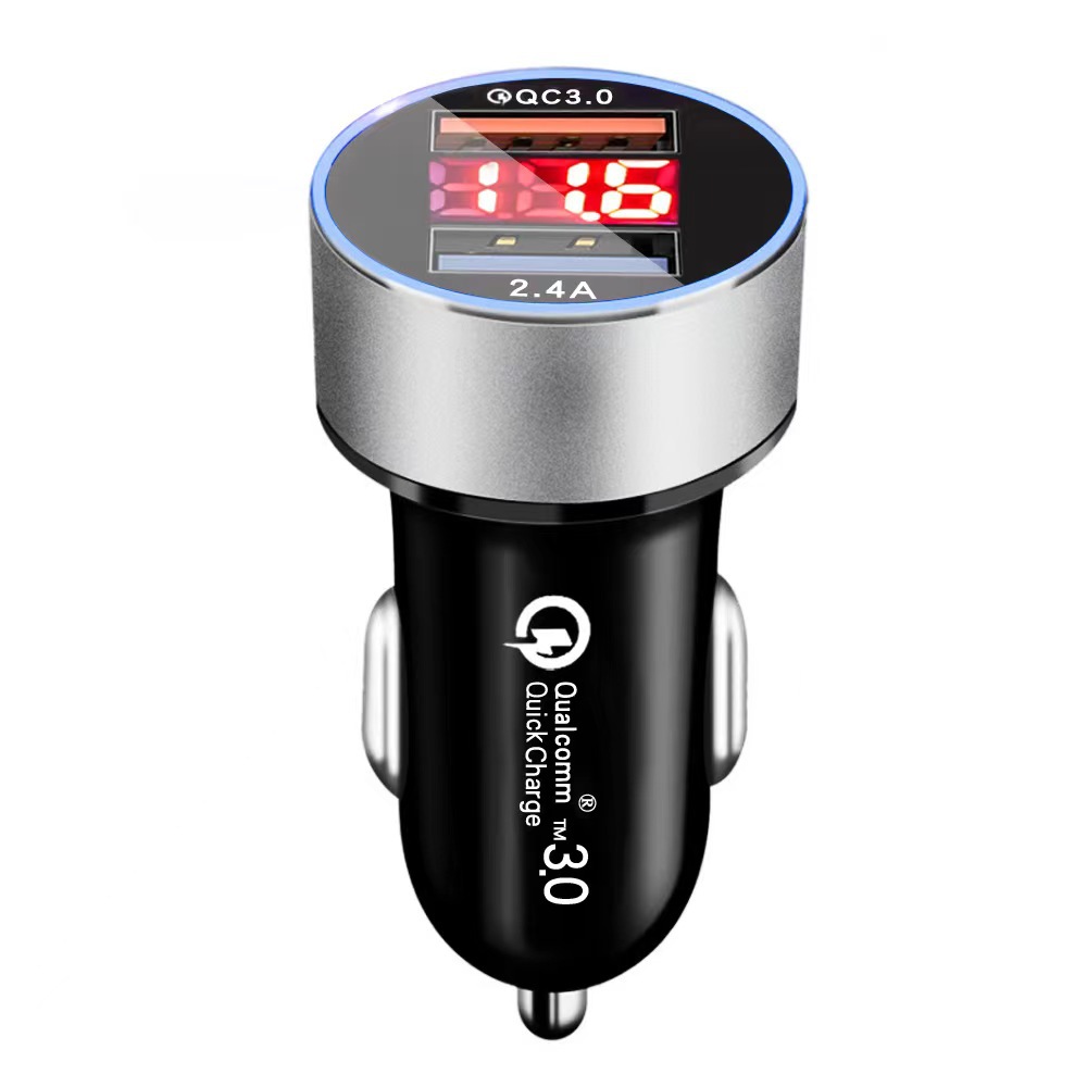 Цифровой дисплей автомобиля Полный спектр зарядное устройство мобильный телефон Быстрая зарядка двойной USB автомобильная зарядка металлическое кольцо дисплей автомобильная зарядка 40 Вт