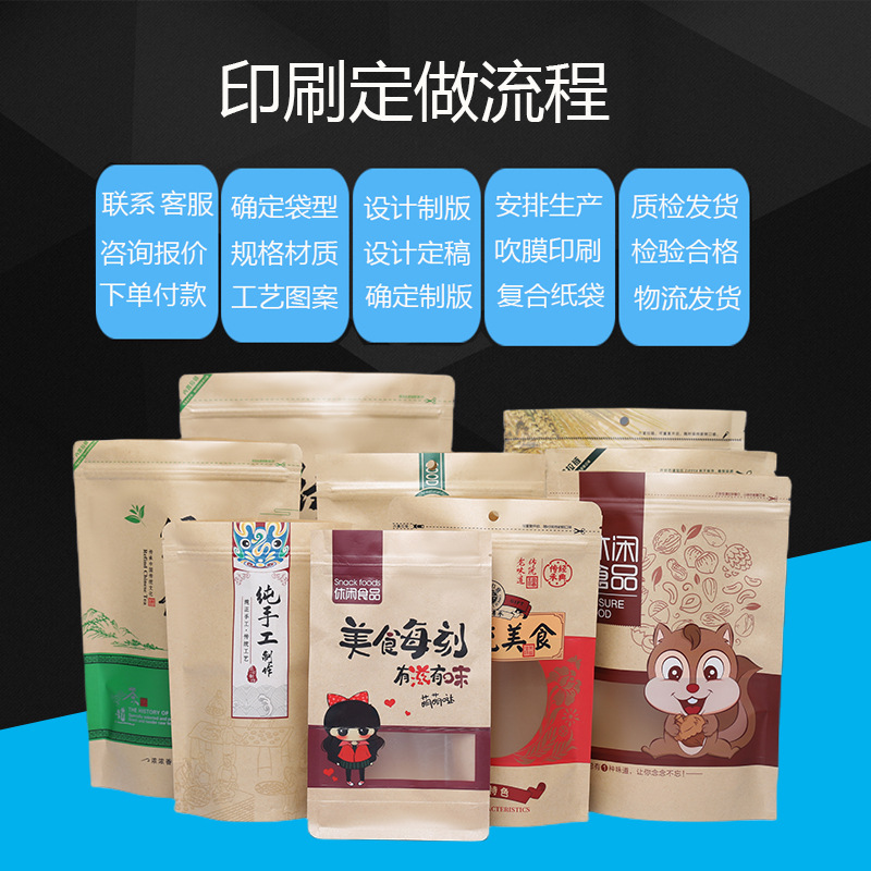Сумка Само-запечатывания бумаги Крафт окна Сумка чая влагостойкая Само-поддерживая Национальной сумка прилива ЗАГЕРМЕТИЗИРОВАННАЯ закуской сумка упаковки еды сухофрукта