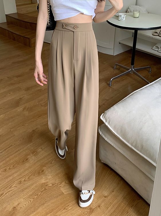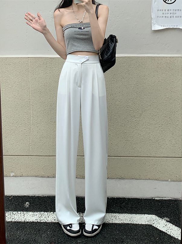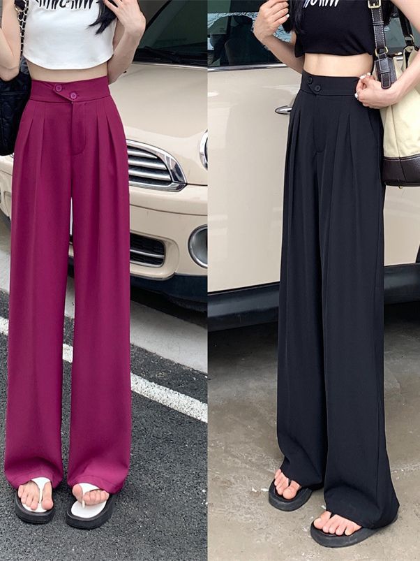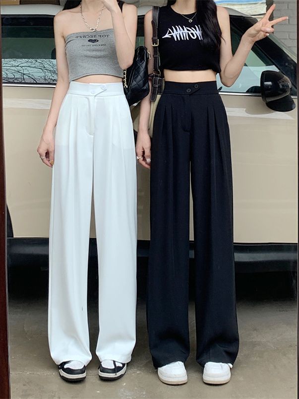 Костюм с широкими штанинами, женские свободные прямые брюки для похудения, универсальные повседневные брюки с высокой талией и драпировкой, Ранняя весна 2023 года