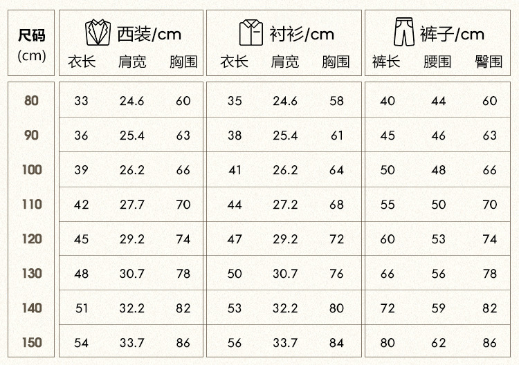 80 см; 90 см; 100 см; 110 см; 120 см; 130 см; 140 см; 150 см