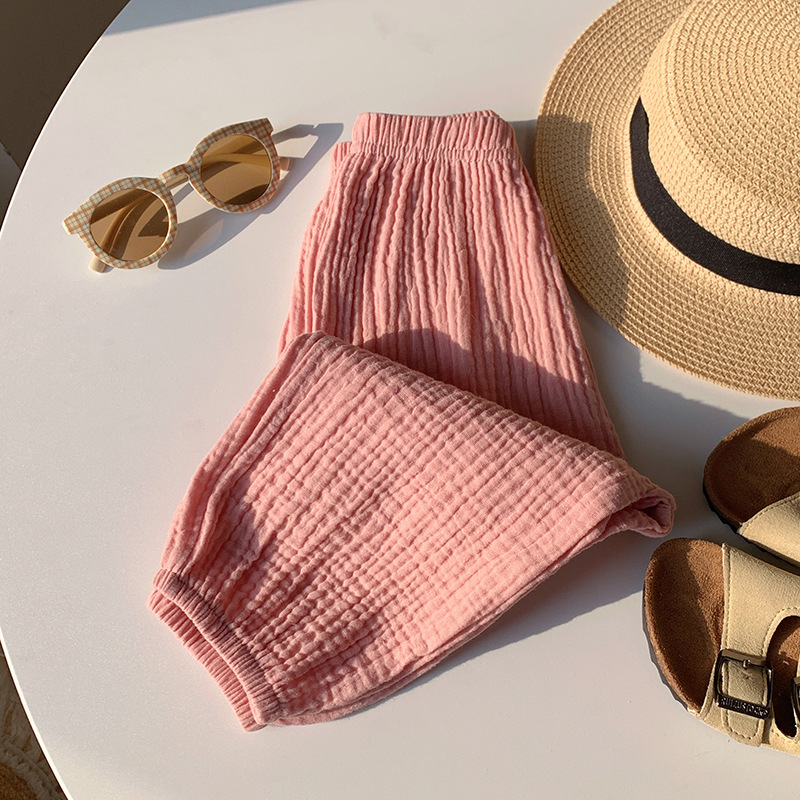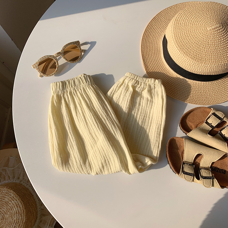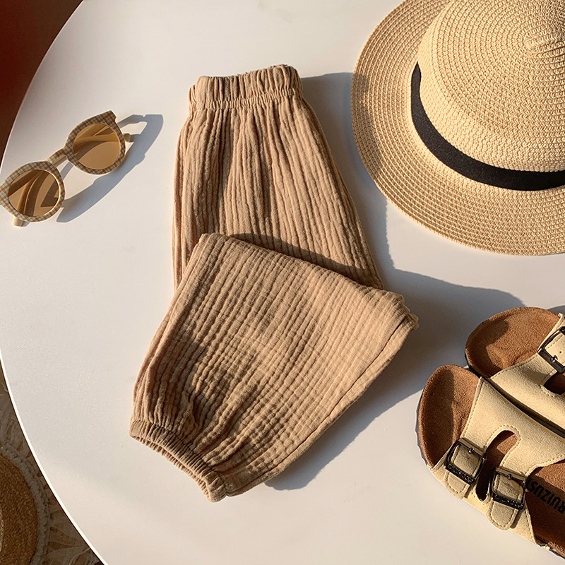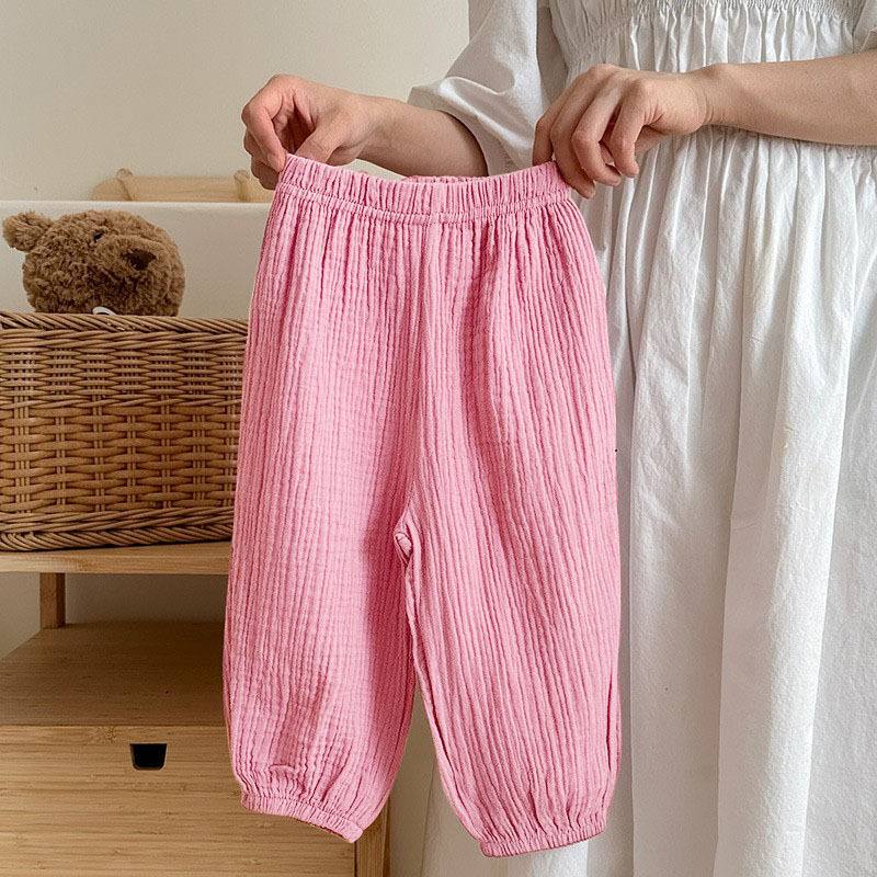 Детские двухслойные хлопчатобумажные штаны от комаров для детей 2025 весна и лето тонкие мужские и женские детские брюки свободные шаровары брюки дикие брюки