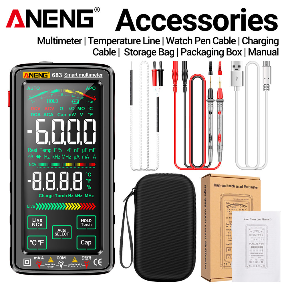 Полноэкранный зарядный мультиметр ANENG, цифровой высокоточный Интеллектуальный автоматический универсальный счетчик с защитой от ожогов для электриков