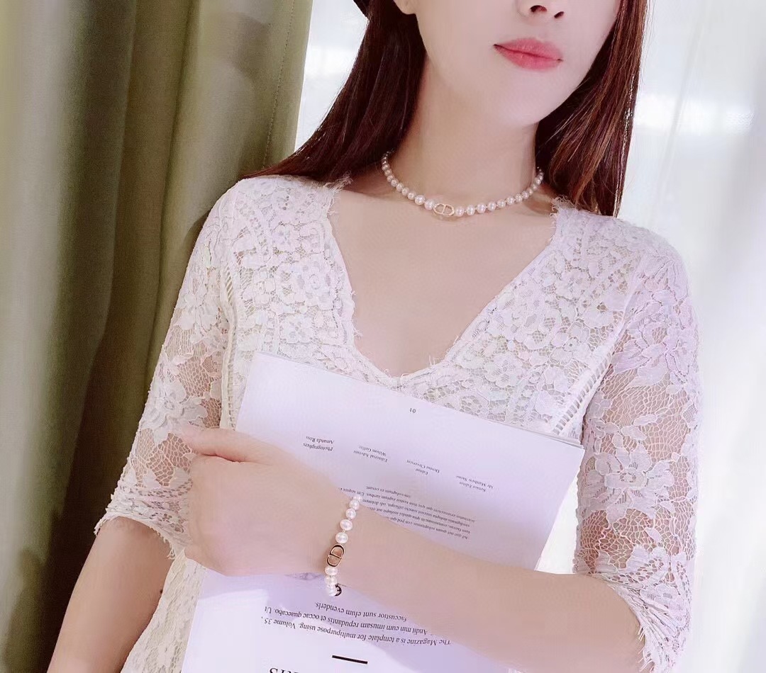 6-7 мм белый закрытый круглый Хорошее качество без косточек пресноводный жемчуг браслет ожерелье костюм CD Письмо Пряжка модный подарок