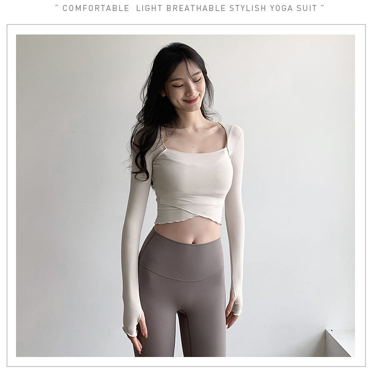 Онлайн красная спортивная одежда для йоги футболка женская внешняя одежда для бега с длинными рукавами быстросохнущий пупок обтягущая сексуальная спортивная одежда топ ins