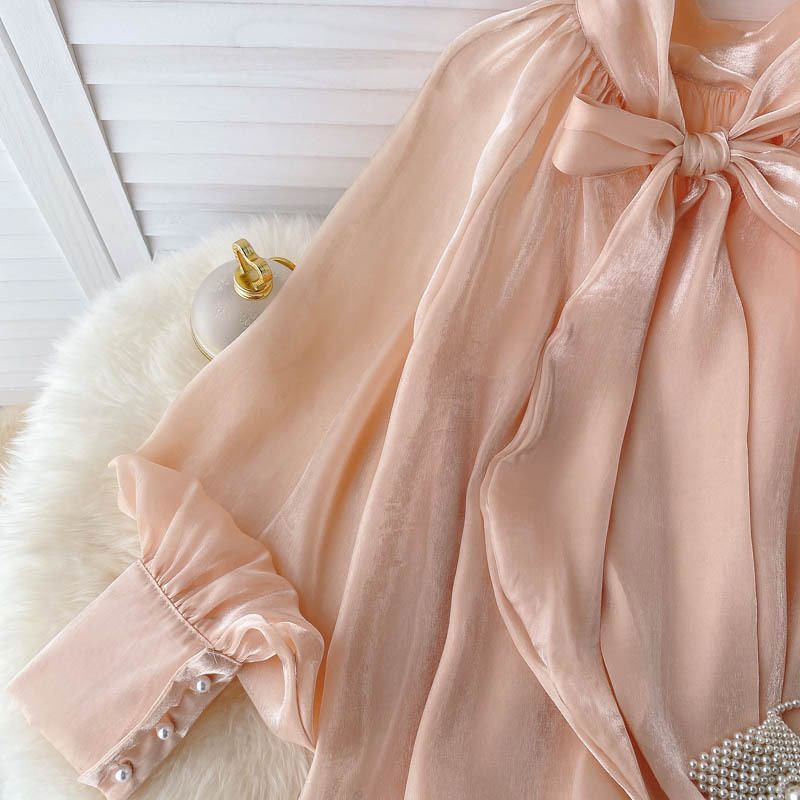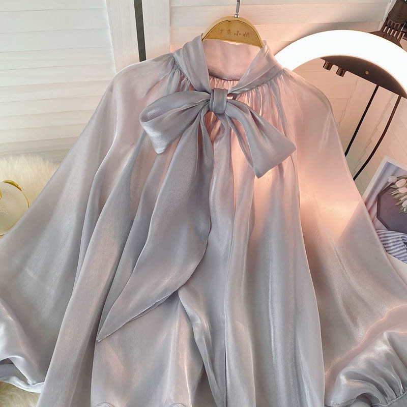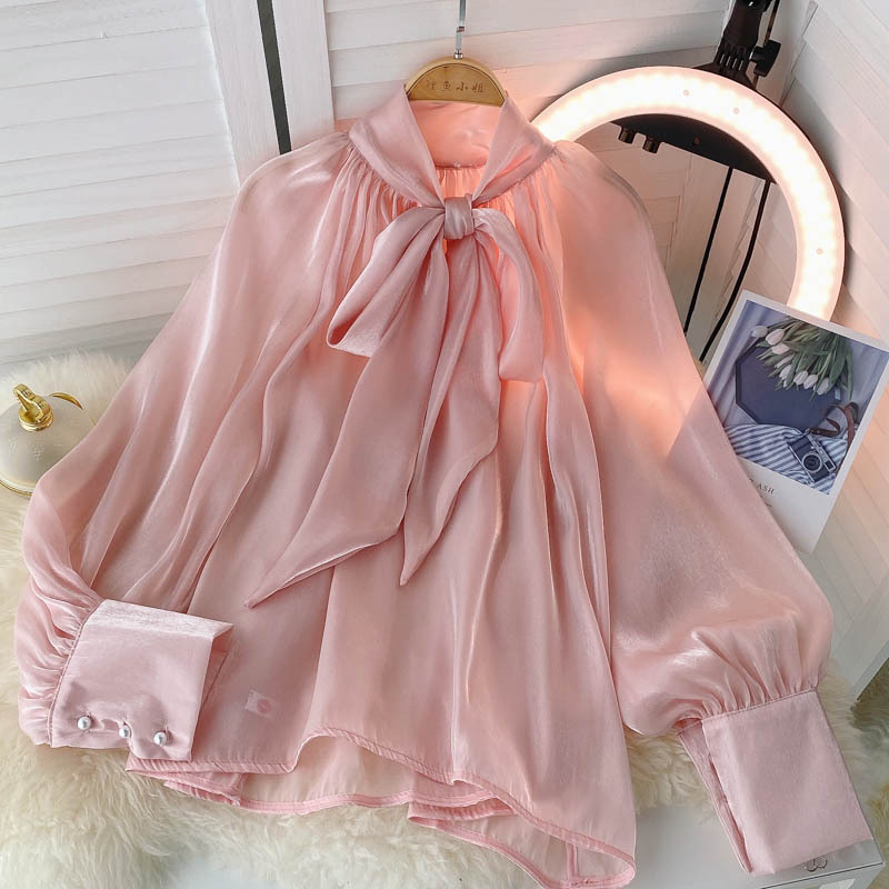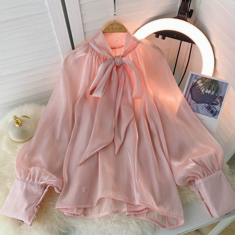 Трансграничная французская рубашка женская чувство дизайна 1 Свет 1 светский стиль темперамент 1 рубашка нежный ветер пузырьковые рукава Топ женский